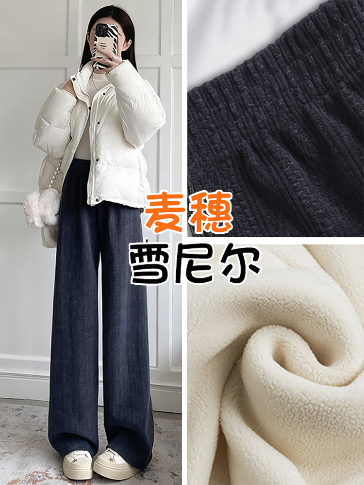 Широкие брюки из пшеничной синели, осень и зима 202, новые свободные прямые маленькие вельветовые брюки на флисовой подкладке для женщин