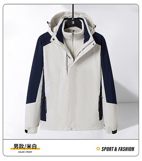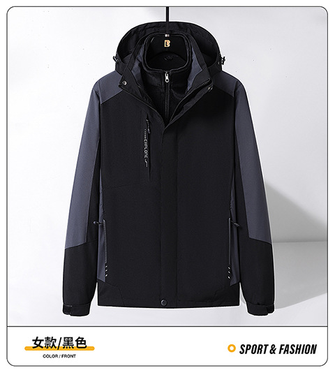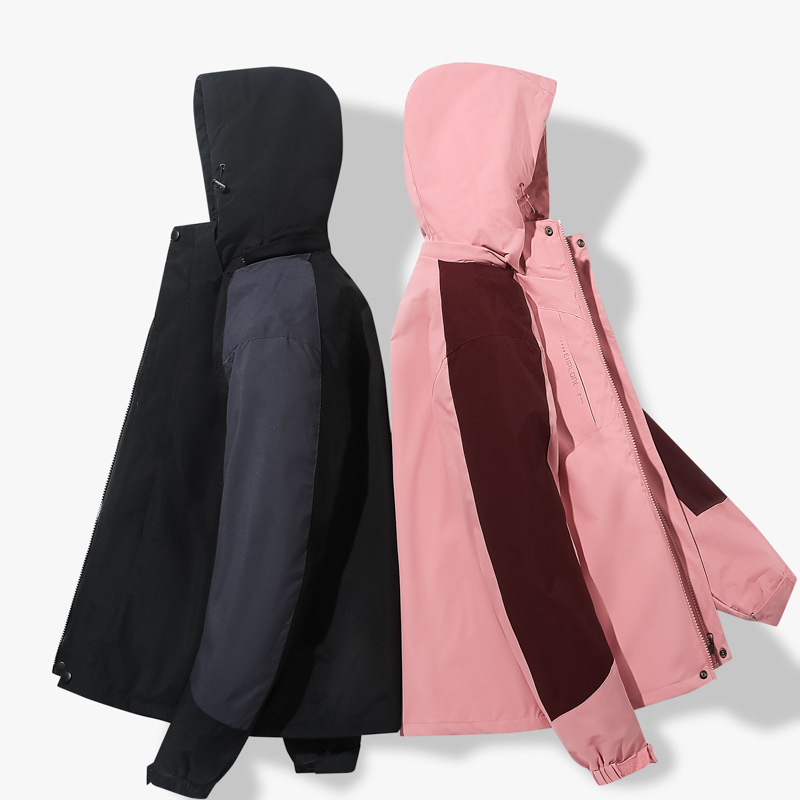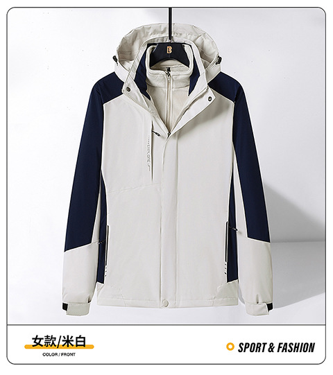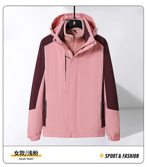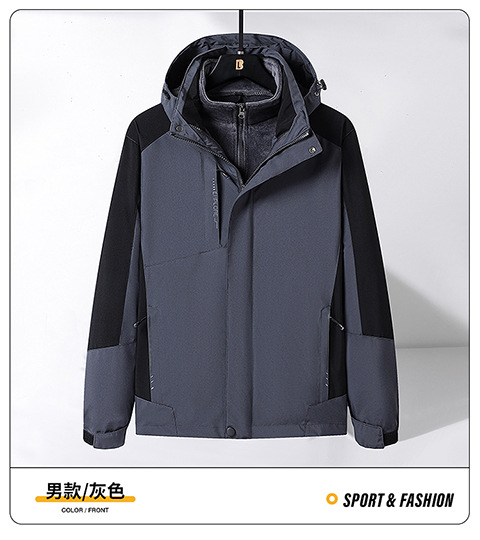 Модная штурмовая одежда на открытом воздухе, Мужская съемная двухсекционная одежда «Три в одном» с бархатной подкладкой из серебристой лисы, Женский непромокаемый альпинистский костюм