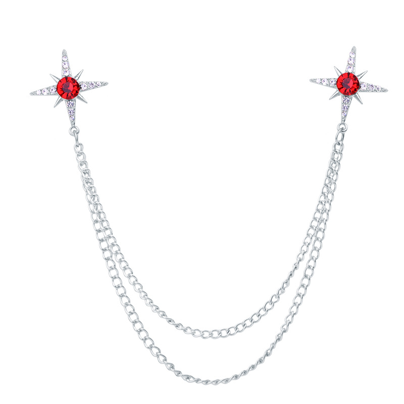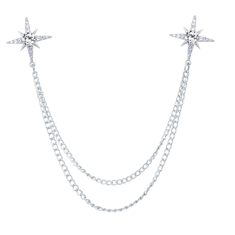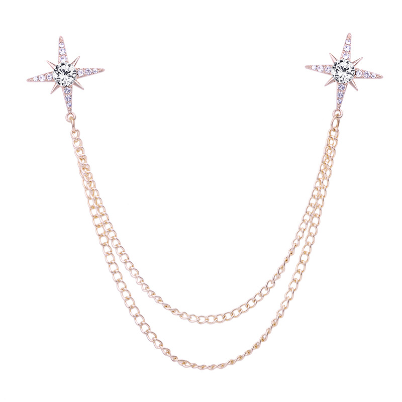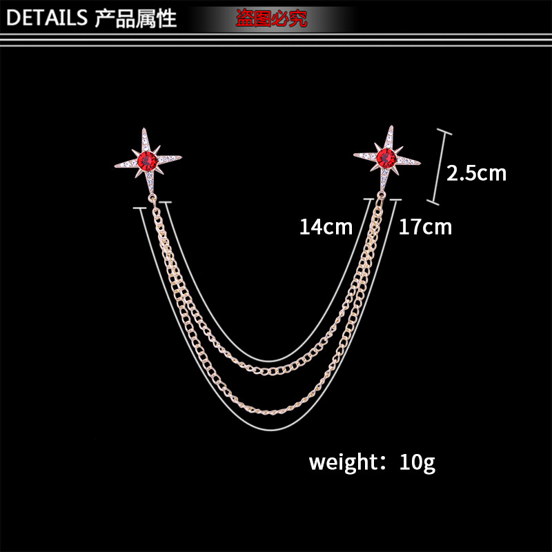 Южная Корея модная отличительная булавка для воротника со звездами Мужская цепочка для воротника рубашки шеститочечная Звезда Женская булавка для воротника с цепочкой с кисточками