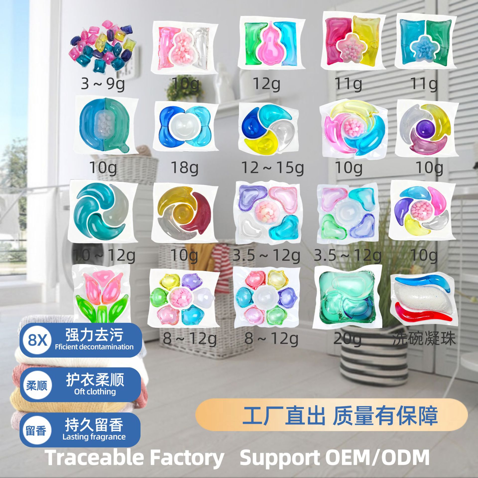 12g Прачечная сгустки 3g Прачечные шарики Концентрированная дезактивация и гладкость Чистый и прочный аромат 8g Одежда для стирки производитель
