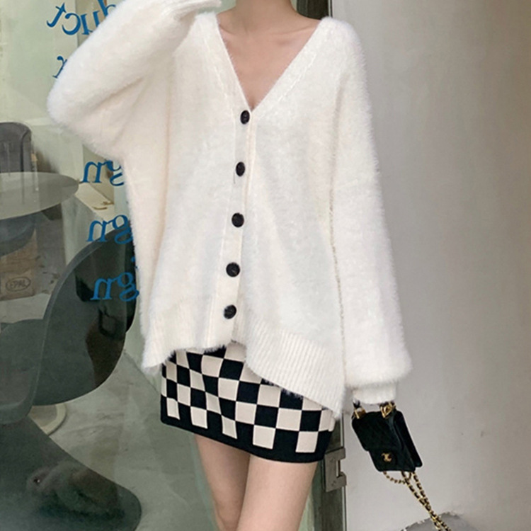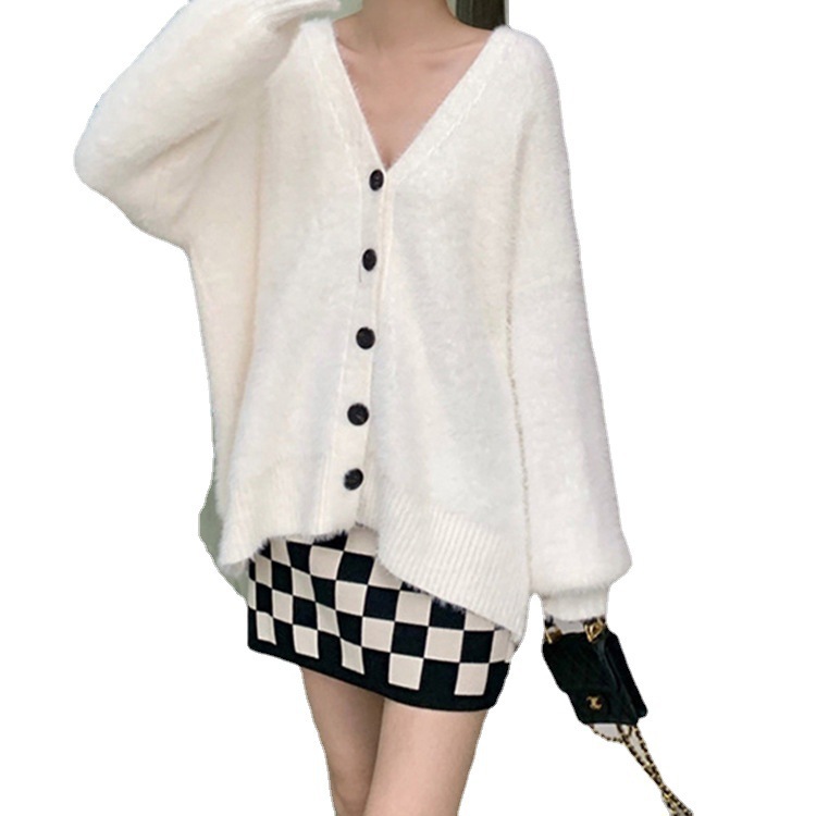 Новинка 2026: Вязаный кардиган из имитации норки в европейском и американском стиле, большие размеры, свободный крой, корейский и британский стиль, для женщин.