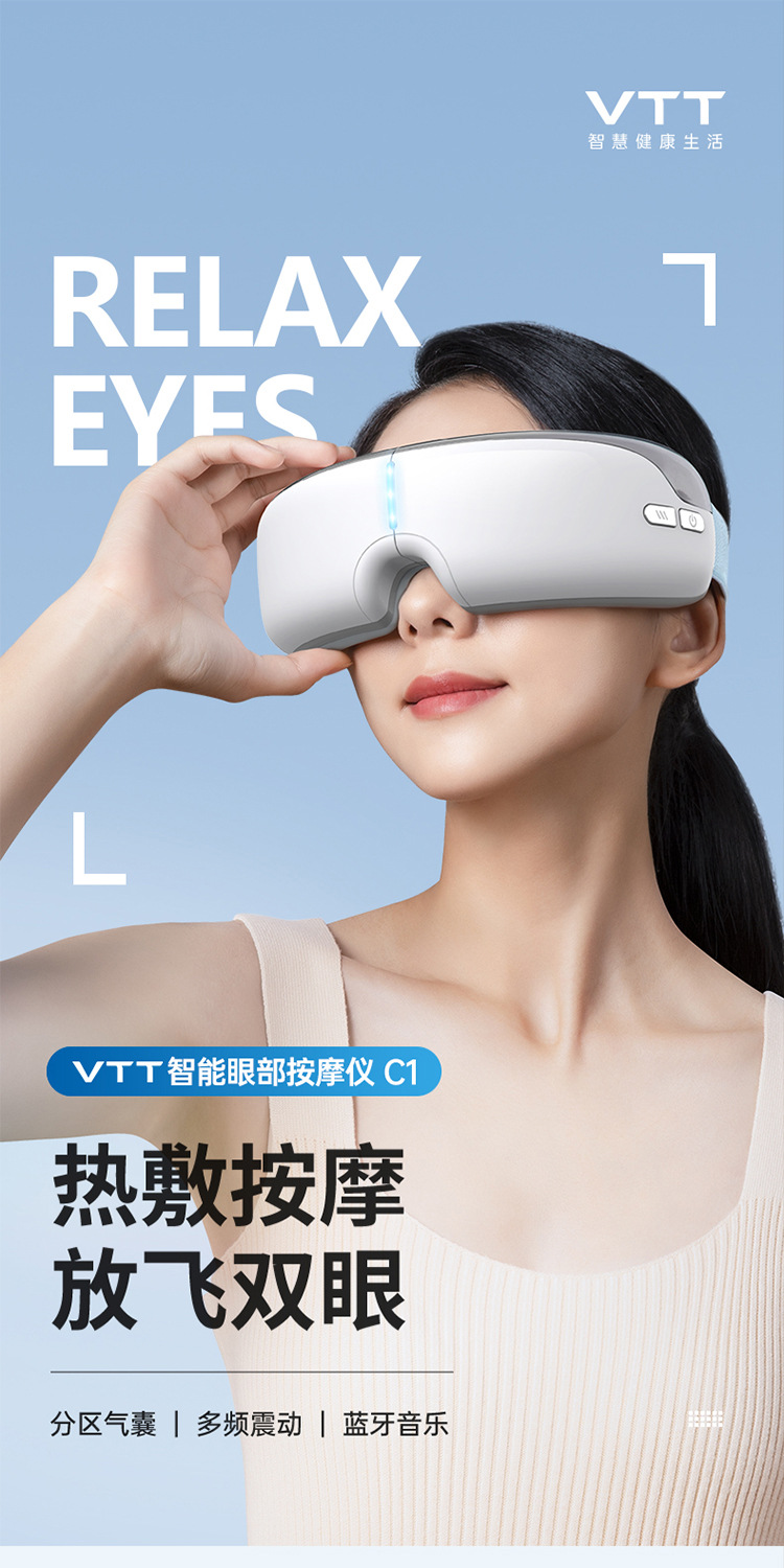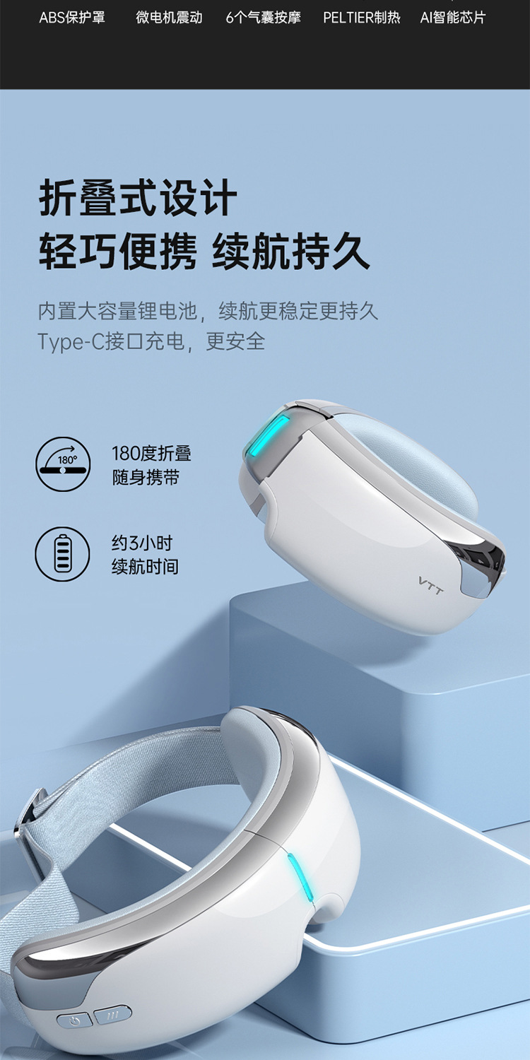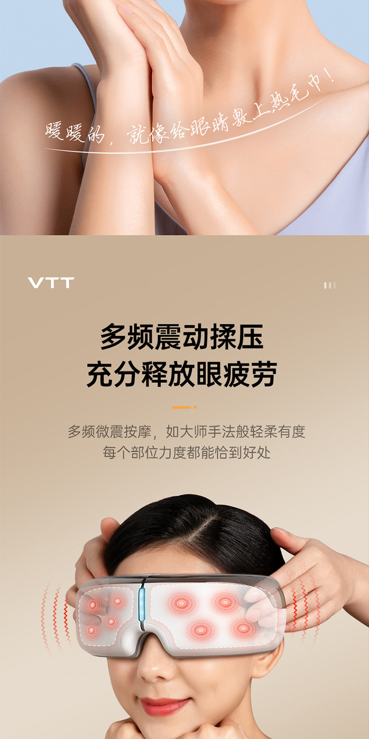 Массажер для глаз VTT, массажер для глаз при усталости, массажная маска для глаз с подогревом и компрессией, оптовая продажа от производителя средств защиты глаз для трансграничной торговли