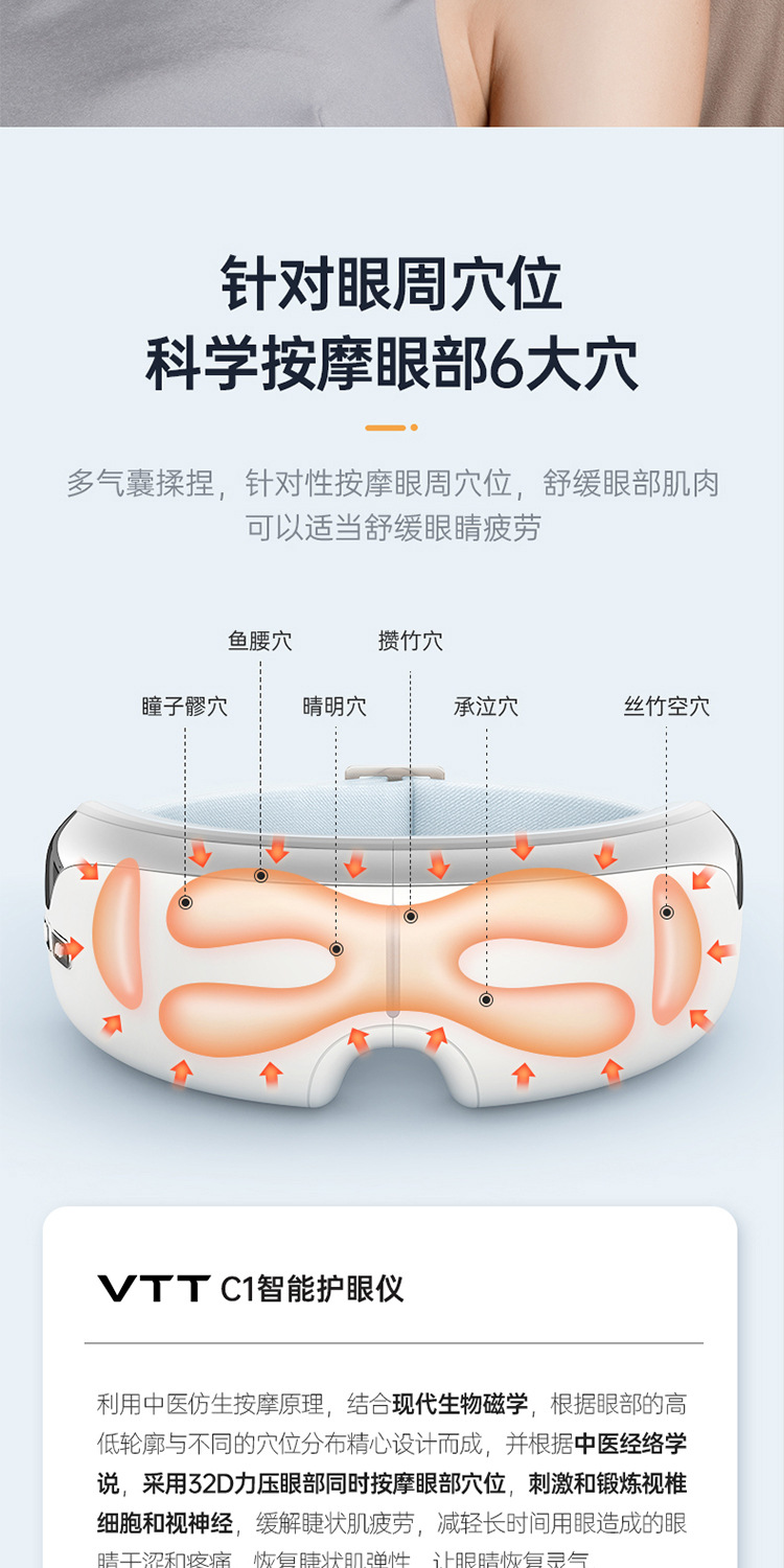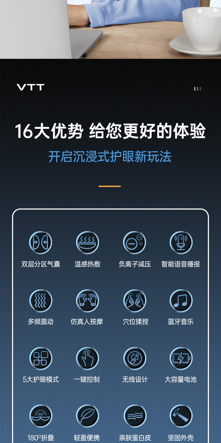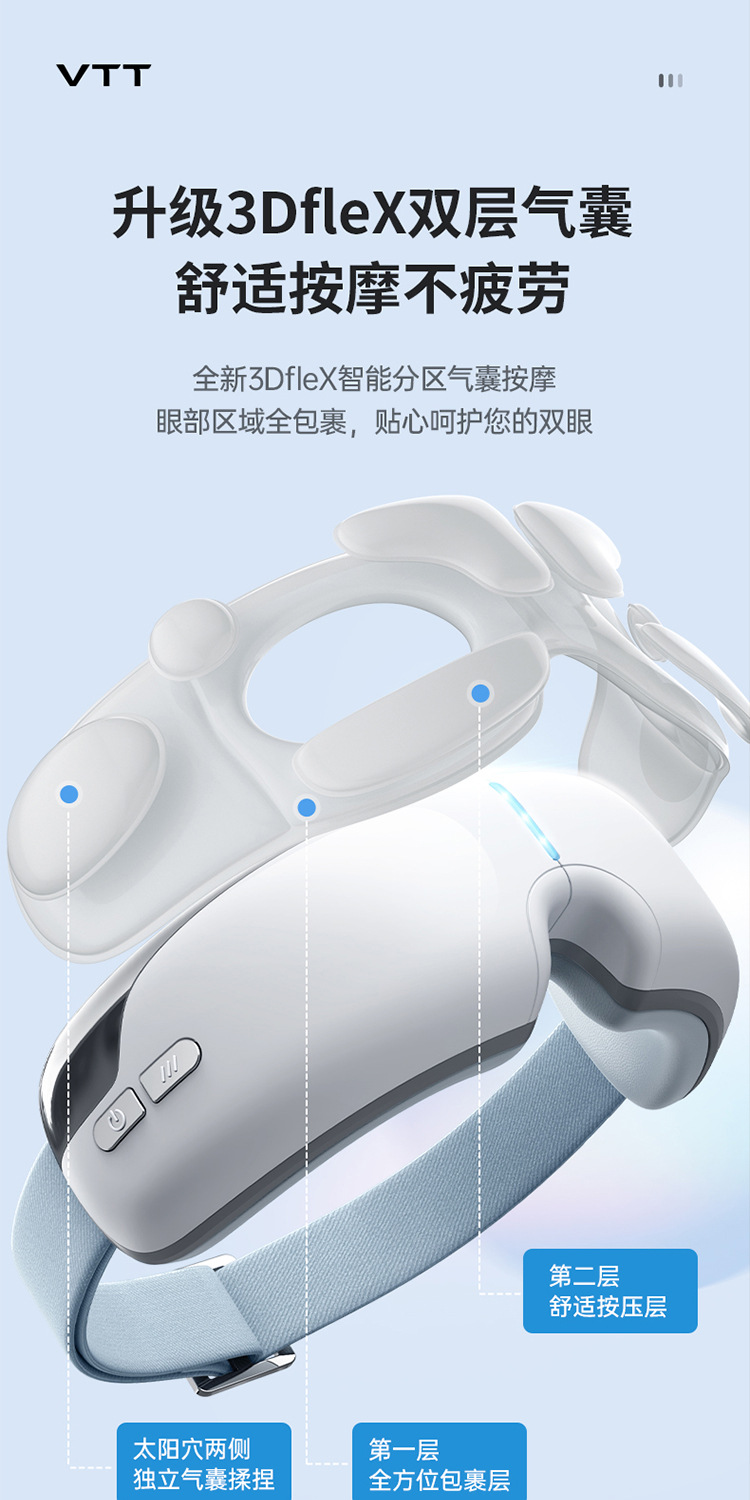 Массажер для глаз VTT, массажер для глаз при усталости, массажная маска для глаз с подогревом и компрессией, оптовая продажа от производителя средств защиты глаз для трансграничной торговли