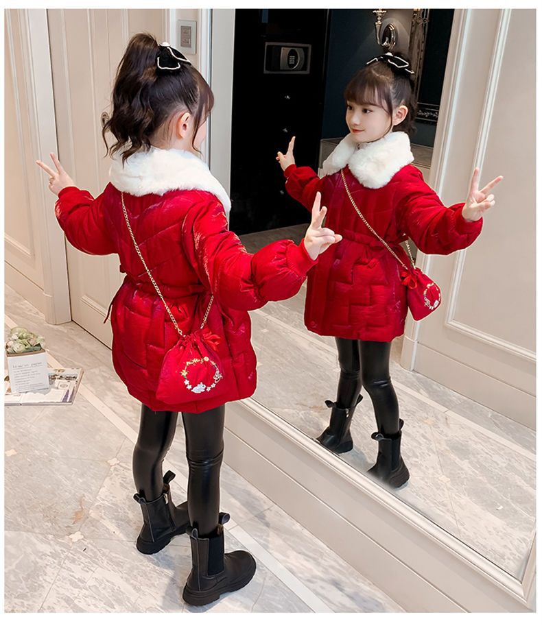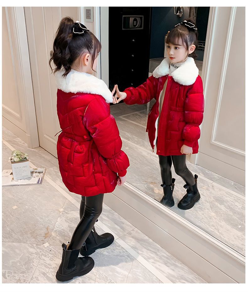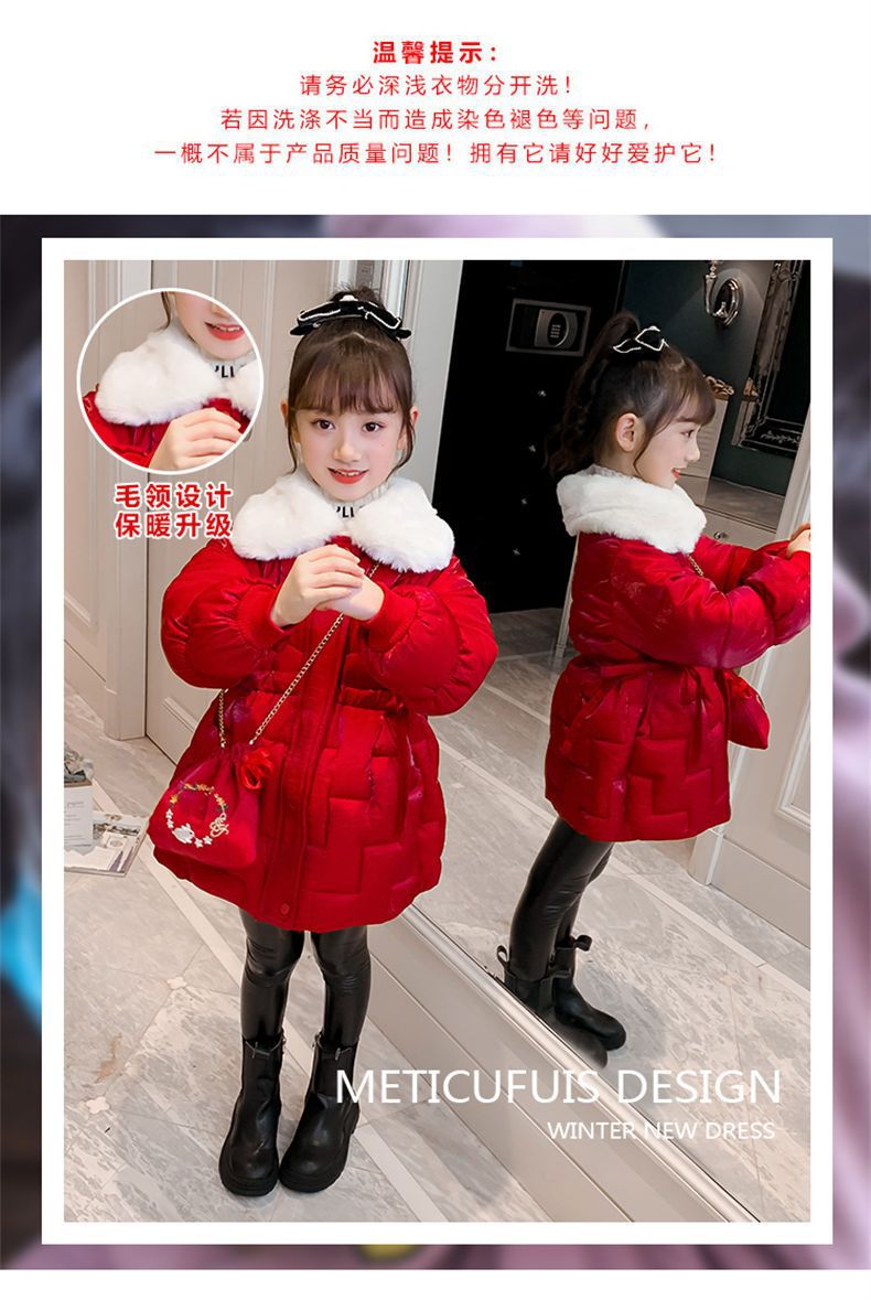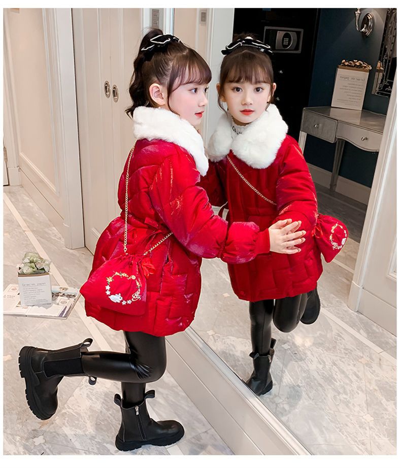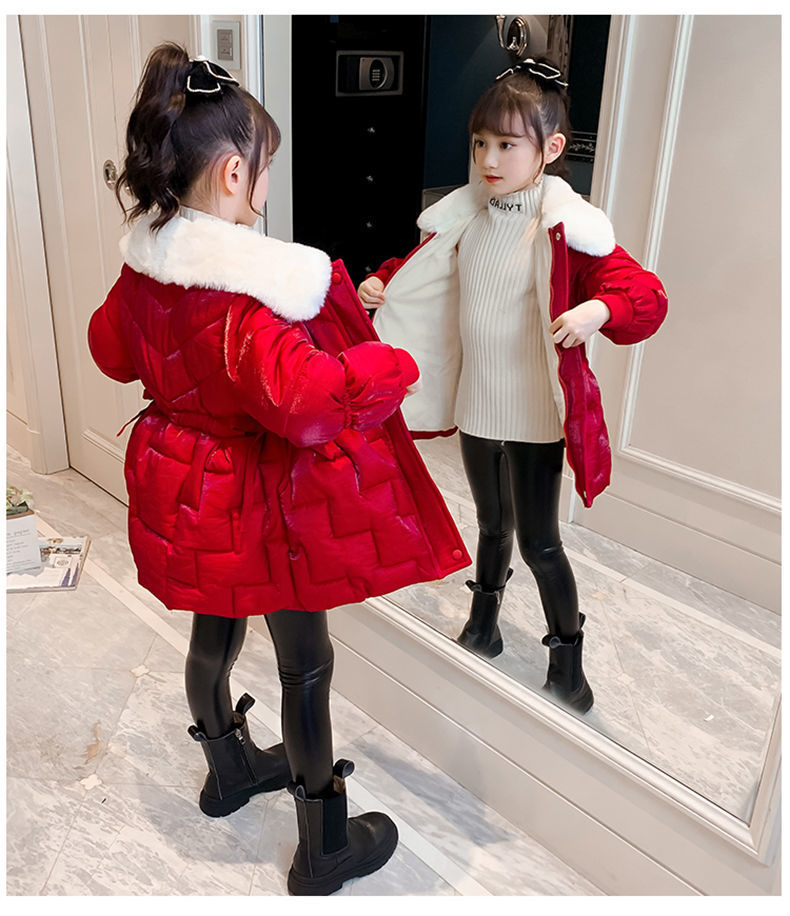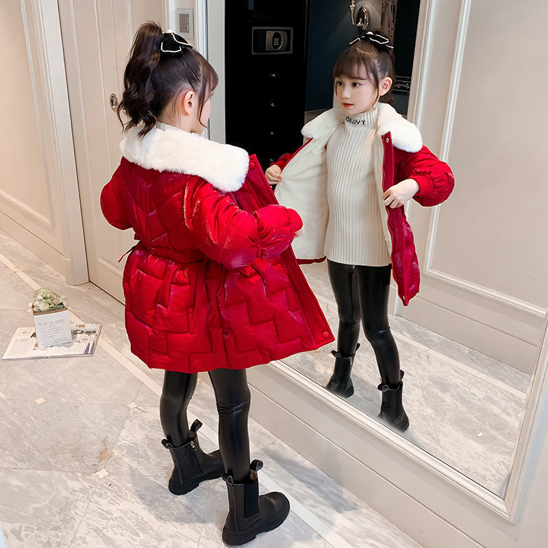 Пальто с хлопковой подкладкой для девочек CUHK, новый стиль 2022, длинная Новогодняя одежда, пальто с хлопковой подкладкой на флисовой подкладке, пуховая куртка с хлопковой подкладкой