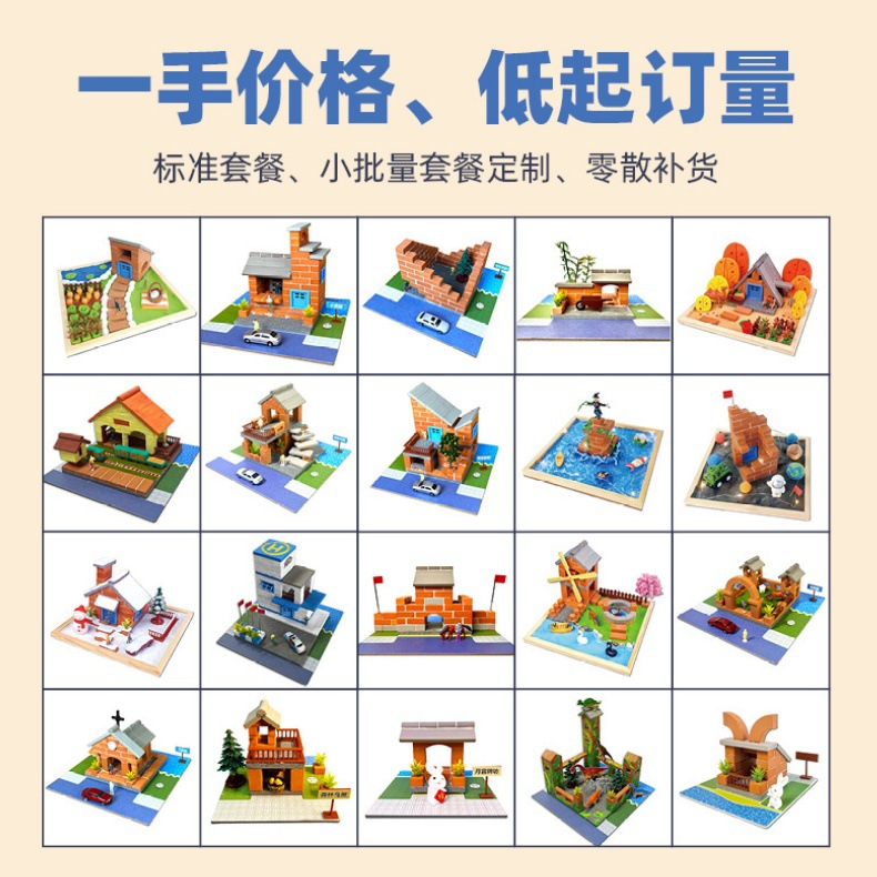 包含:砖块瓦片等主材、小配件、彩色底板、水泥包