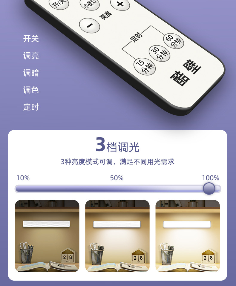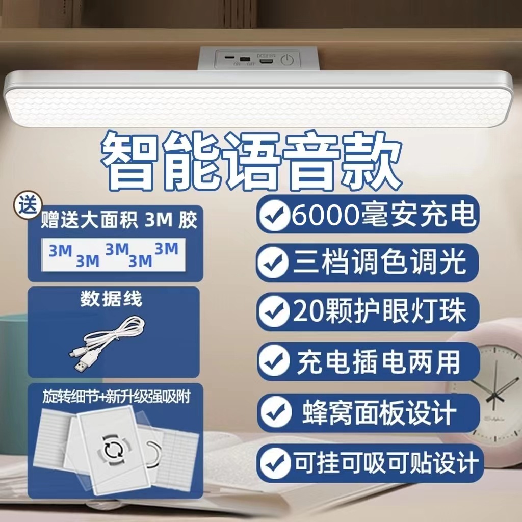 Крутой настенный светильник с дистанционным управлением, магнитная голосовая лампа для учебной комнаты, студенческое общежитие, перезаряжаемая лампа для чтения, защита глаз, обучающая лампа
