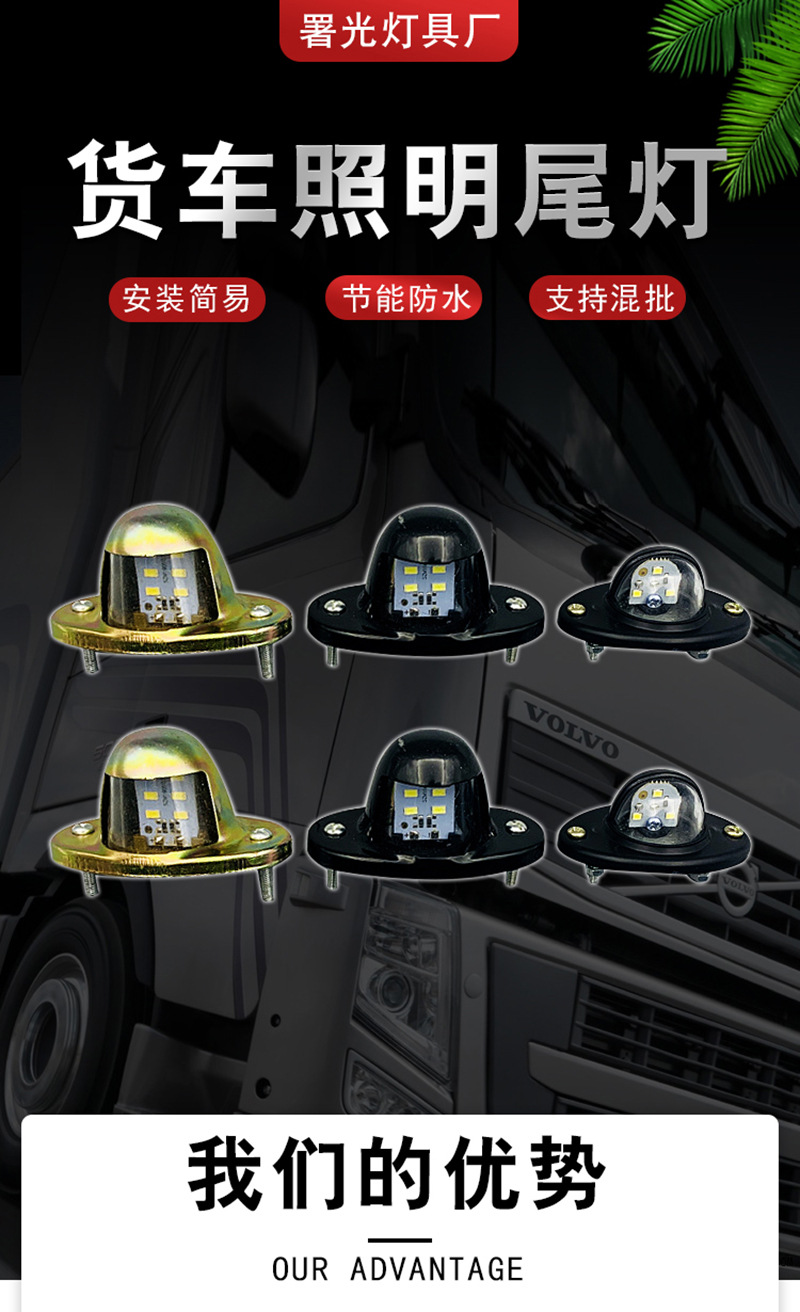 Светодиодная подсветка номерного знака для автомобиля 24В, водонепроницаемая, для грузовиков, прицепов, автобусов, круглая
