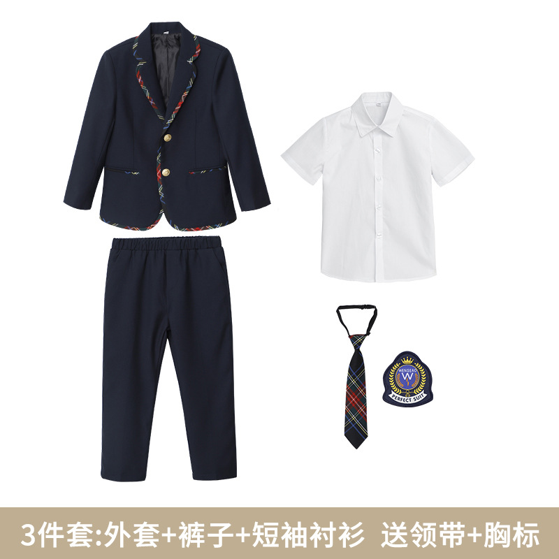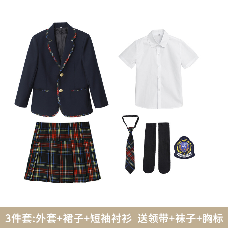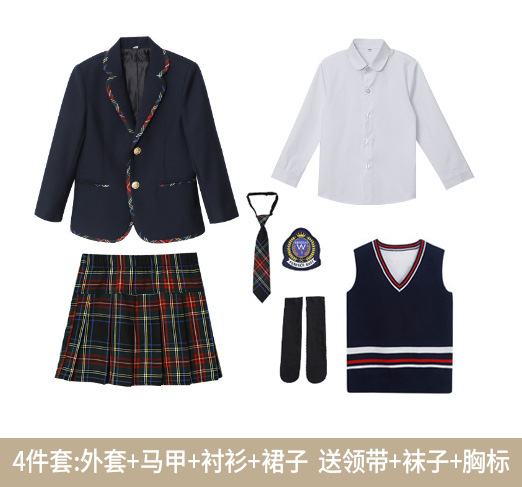 комплект из двух предметов для мальчиков; комплект из двух предметов для девочек; костюм-тройка для мальчика; комплект из трех предметов для девочек; Комплект из трех предметов рубашки с короткими рукавами для мальчика; комплект из трех предметов рубашки с короткими рукавами для девочек; Комплект из четырех предметов для мальчика; Комплект из четырех предметов для девочек; одинарная куртка; одинарная юбка