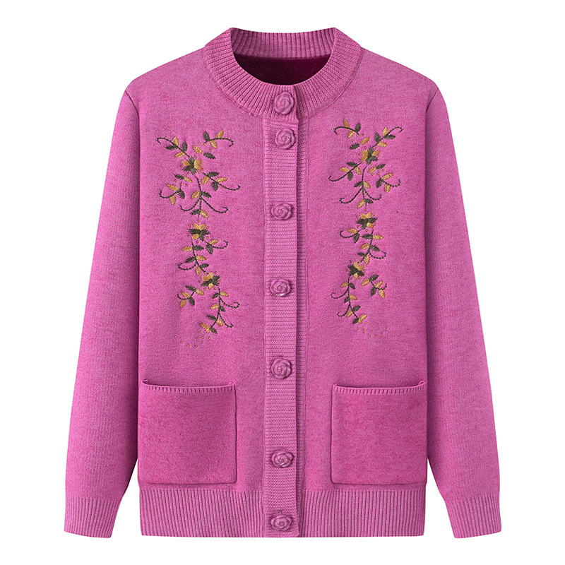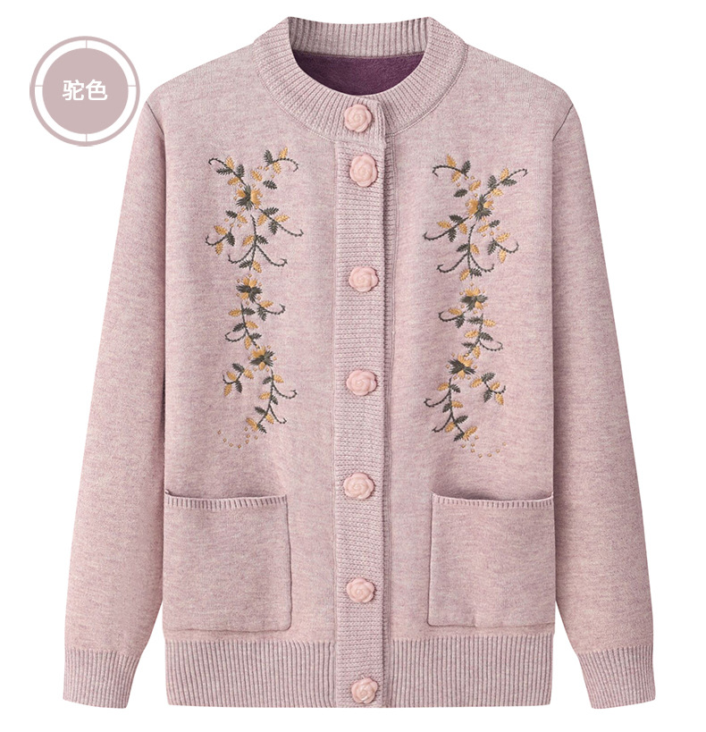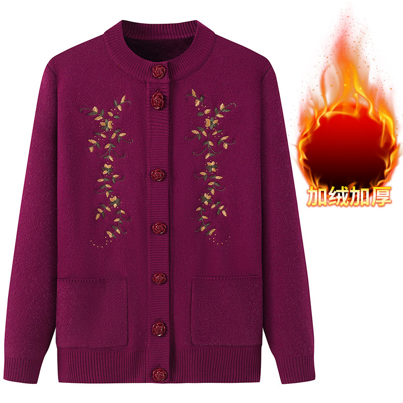 Весеннее и осеннее пальто для мам среднего возраста и пожилых людей, свитер для бабушек, Женский утолщенный вязаный кардиган на флисовой подкладке, зимняя одежда, одежда для пожилых дам