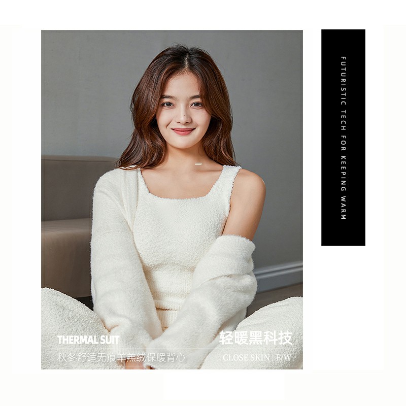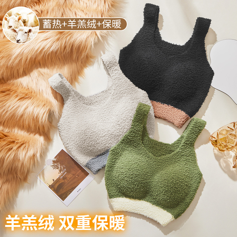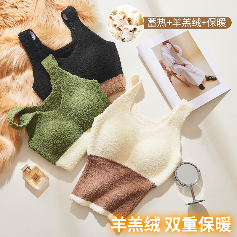 Осенне-зимнее бархатное женское нижнее белье из ягненка, терможилет на флисовой подкладке с нагрудной подкладкой, бюстгальтер, цельное женское нижнее белье, длинное издание