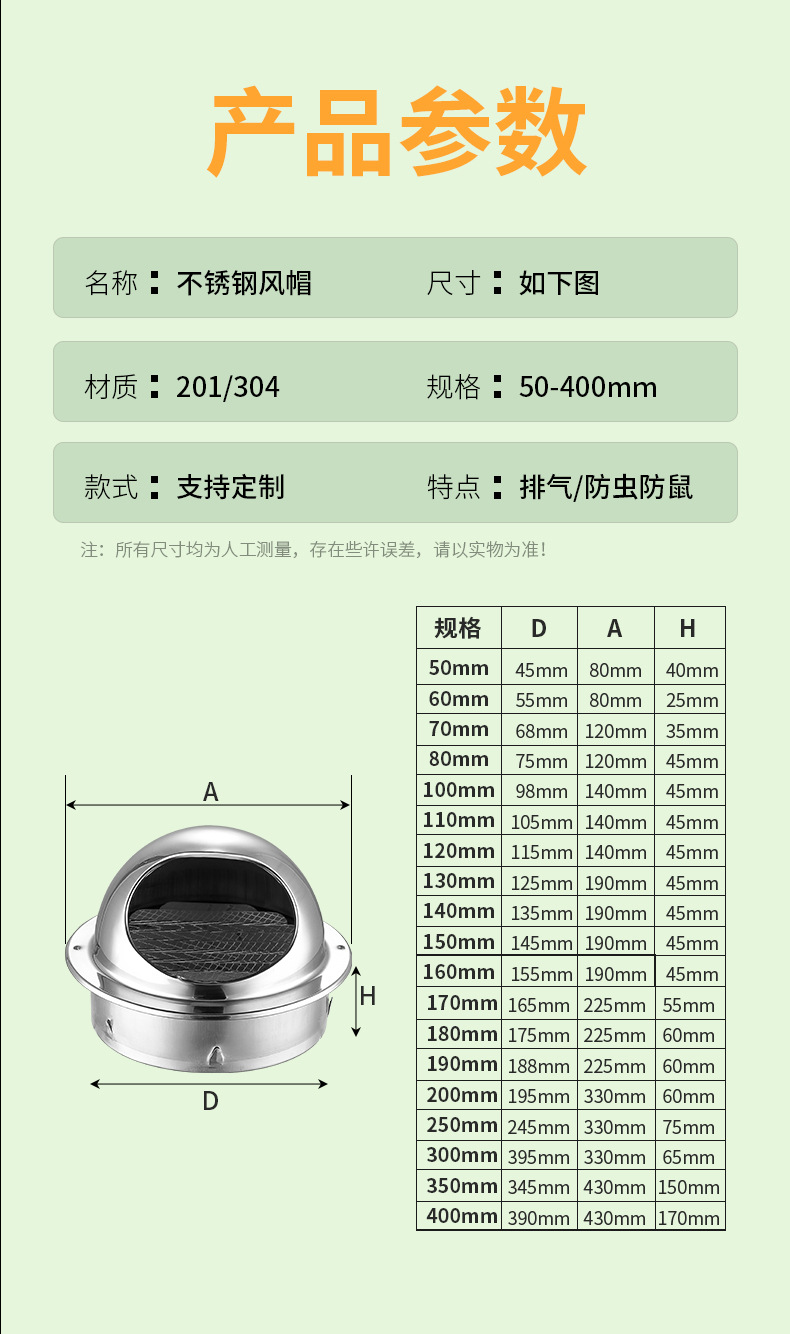 Капюшон из нержавеющей стали, внешняя стена, Внешняя Крышка вентиляционного отверстия, непромокаемая вентиляционная вытяжка, лобовое стекло, аксессуары для систем свежего воздуха