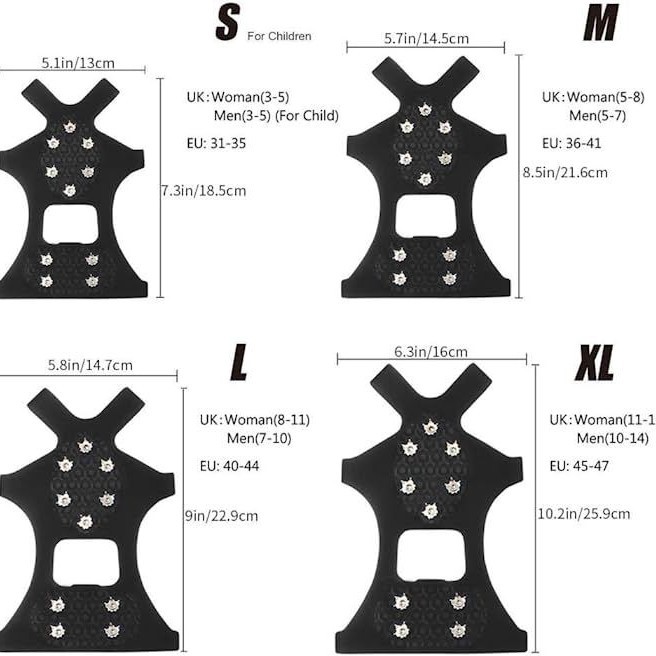 10-зубчатые стальные кошики для ног S (размер 27-34) черные; 10-зубчатые стальные кошики для ног с гвоздями, размер M (35-39), черные; Стальные кошки с 10 зубцами, размер L (39-45), черные; Стальные кошики на 10 зубьев XL (размер 44-48) черные; 10-зубчатые стальные кошики для ног с шипами, оранжевые, размер L (39-45); 10-зубчатые стальные кошики для ног S (размер 27-34), белые и прозрачные; 10-зубчатые стальные кошики для ног с гвоздями, размер M (35-39), белые и прозрачные; Стальные кошики для ног с 10 зубцами, размер L (40-45), белые и прозрачные; Стальные кошки с 10 зубцами XL (размер 44-48) белые и прозрачные; 10-зубчатые желтые кошики для ногтей S (размер 27-34) черные; 10-зубчатые желтые кошки для ногтей М (размер 35-39) черные; 10-зубчатые желтые кошки для ногтей L (размер 40-45) черные; Когти для льда с 10 зубцами, желтые, размер XL (44-48), черные; 10-зубчатые желтые кошики для ногтей S (размер 27-34) прозрачные; Когти для ногтей с 10 зубцами, желтые, размер M (35-39), прозрачные; Когти для ногтей с 10 зубцами, желтые, размер L (40-45), прозрачные; Когти для ногтей с 10 зубцами, желтые, XL (размер 44-48), прозрачные