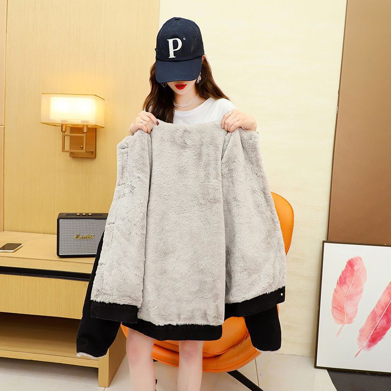 Универсальная джинсовая куртка для женщин с флисовой подкладкой и толстой вышивкой букв, новинка 2025 года, осенне-зимний свободный универсальный миниатюрный топ