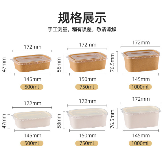 Одноразовая упакованная коробка может быть подогретой в микроволновой печи Прямоугольная крафт-бумажная коробка для еды Бумажная миска для еды Бумажная миска для еды