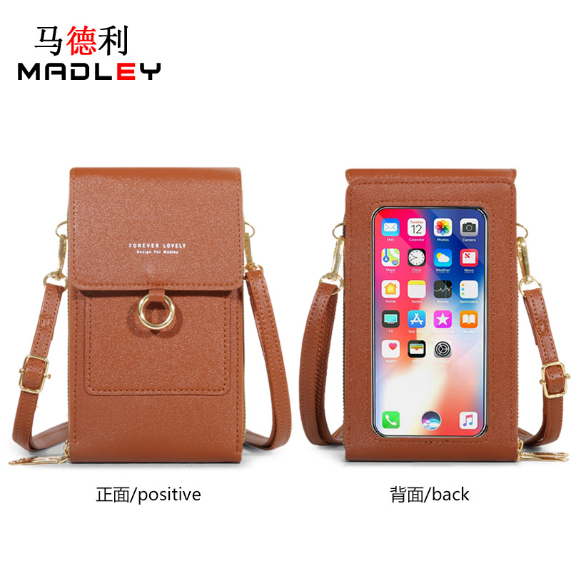Женский кошелек-Кроссбоди из искусственной кожи с сенсорным экраном MADLEY, маленькая сумка через плечо в корейском ретро-стиле, однотонная сумка через плечо