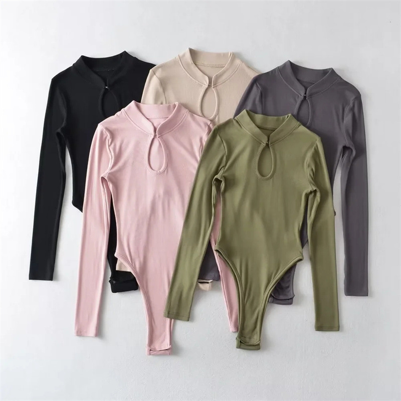 Mastery Spice Girl Комбинезон с полым вырезом на груди Стильная модная Базовая рубашка Осень 22 Новый топ с эластичным воротником для женщин