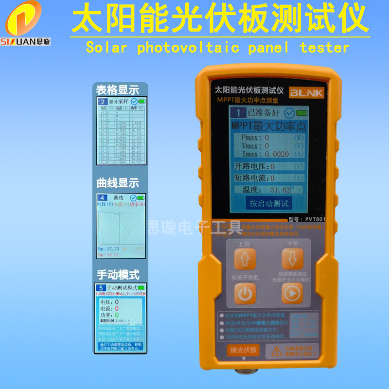 2022 Новая солнечная фотоэлектрическая панель детектор фотоэлектрическая панель мультиметр лампа литиевая батарея детектор MPPT