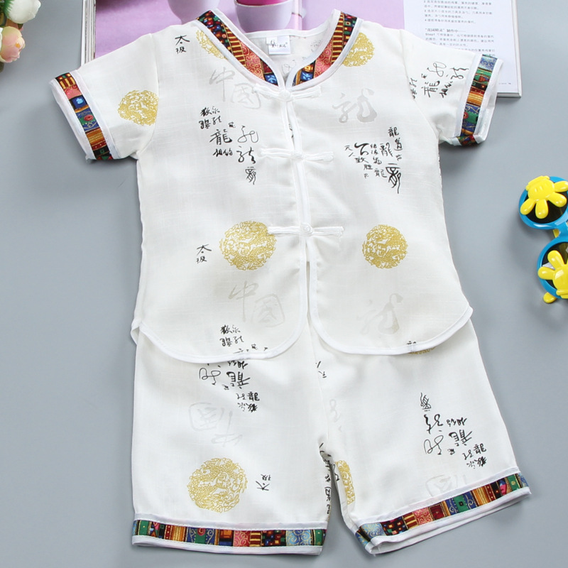 Детский костюм Костюм Тан для мальчиков Одежда для выступлений Детский костюм Тан с короткими рукавами Костюм кунг-фу Китайский костюм Платье из хлопка и льна для одного года