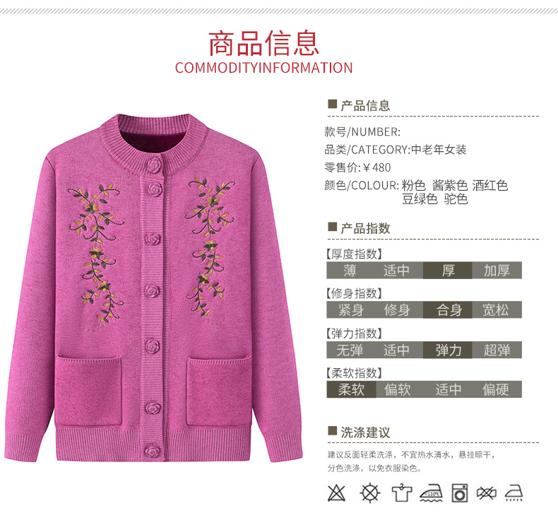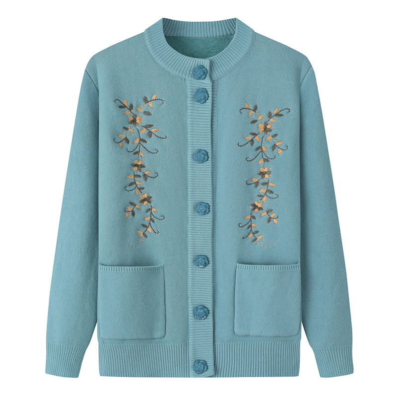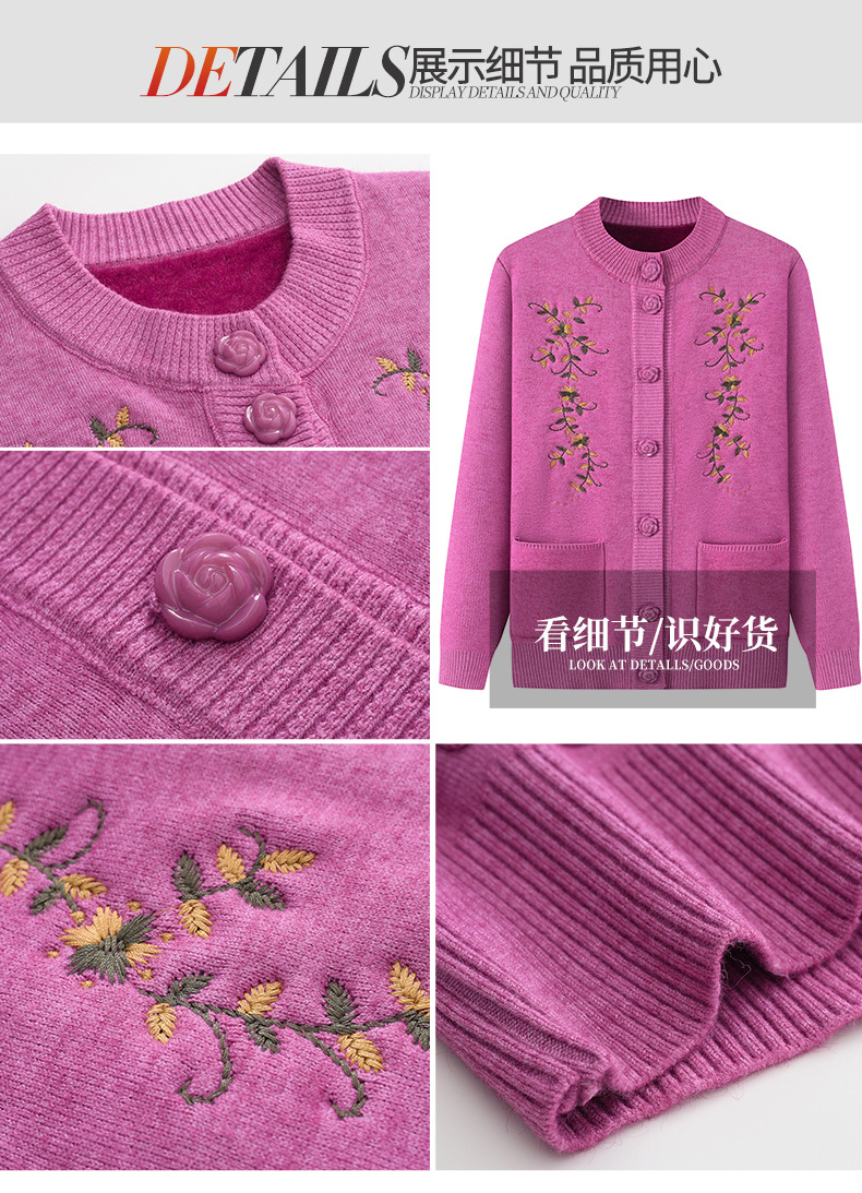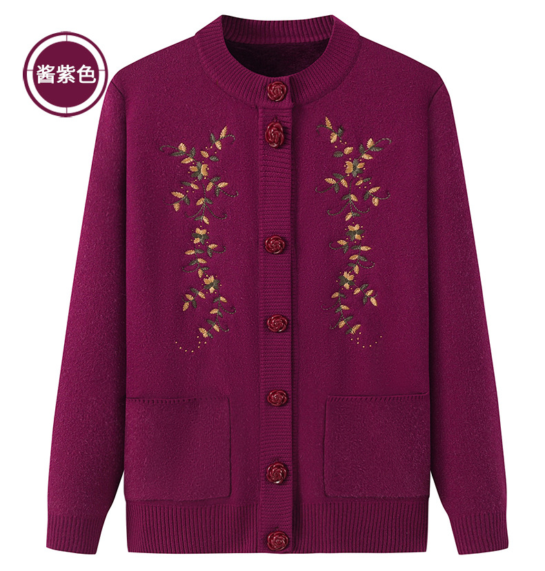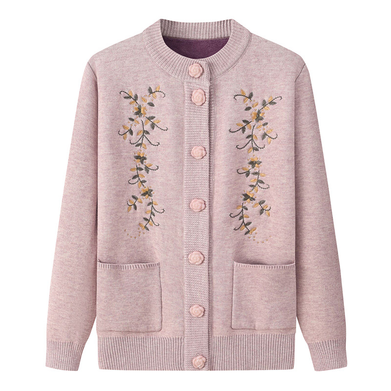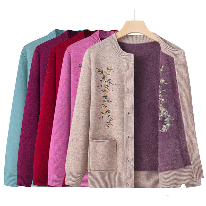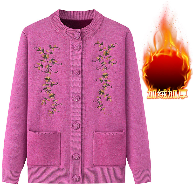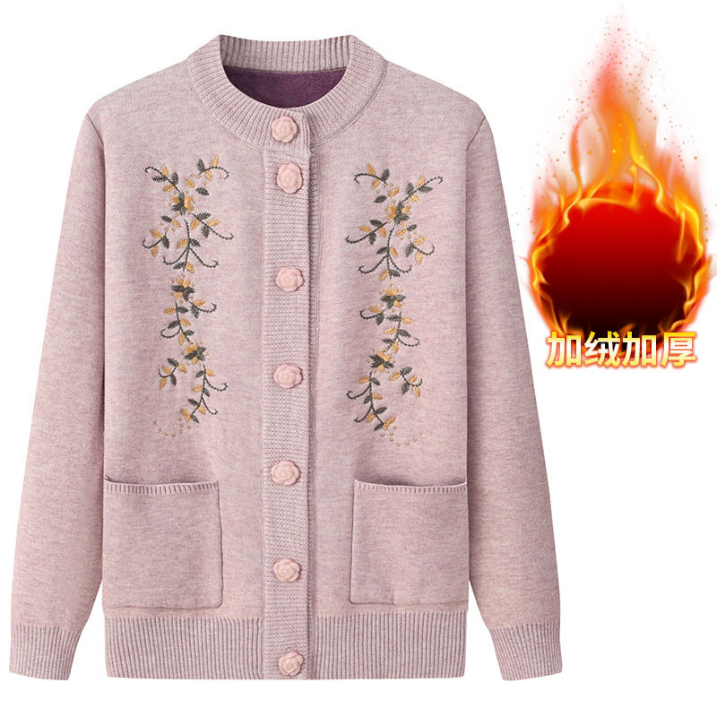 Весеннее и осеннее пальто для мам среднего и пожилого возраста, свитер для бабушек, Женский утолщенный вязаный кардиган на флисовой подкладке, зимняя одежда, одежда для пожилых женщин