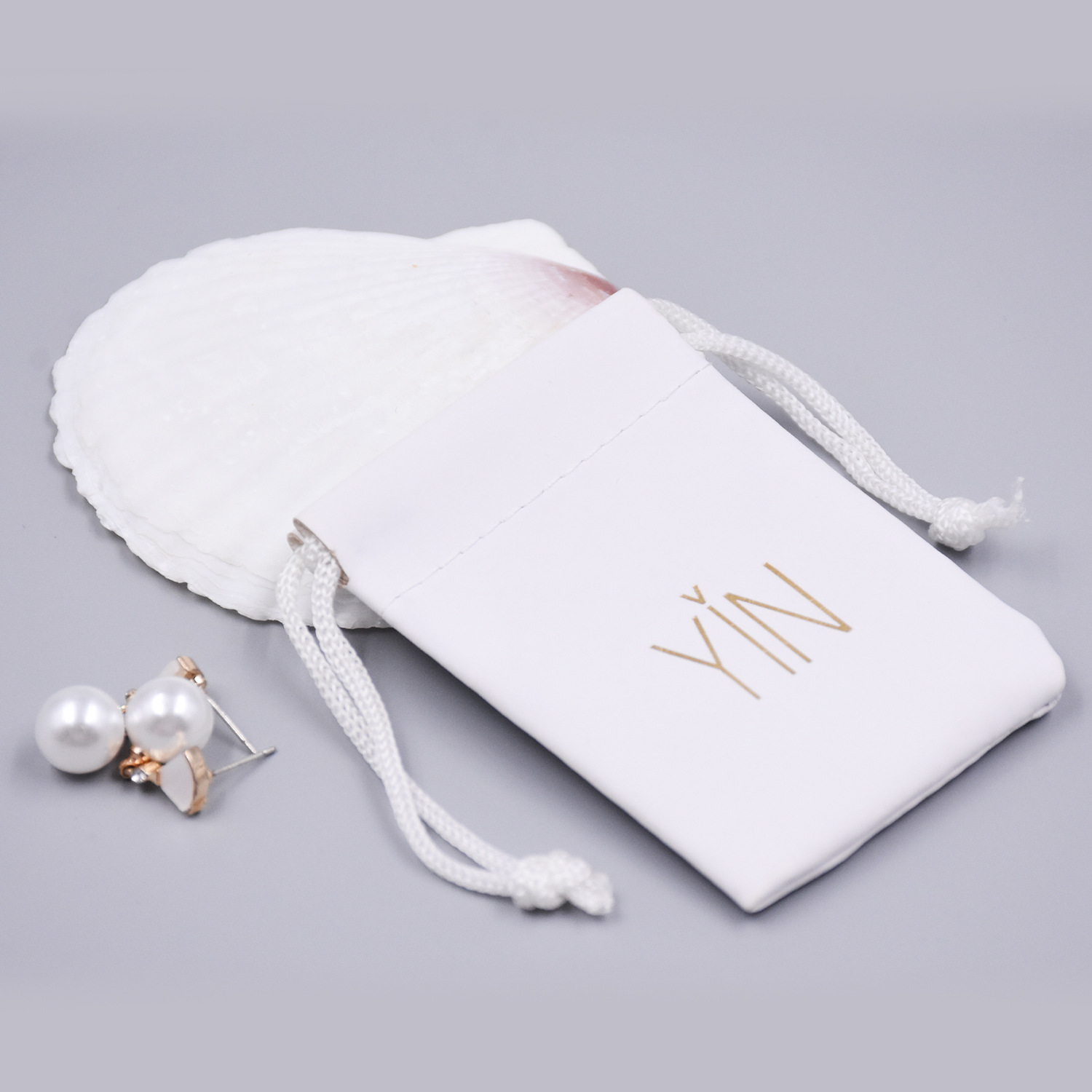 Эксклюзивная ювелирная сумка-мешочек на завязках, белая упаковка, нежная на ощупь, из искусственной кожи PU, возможность индивидуального оформления.