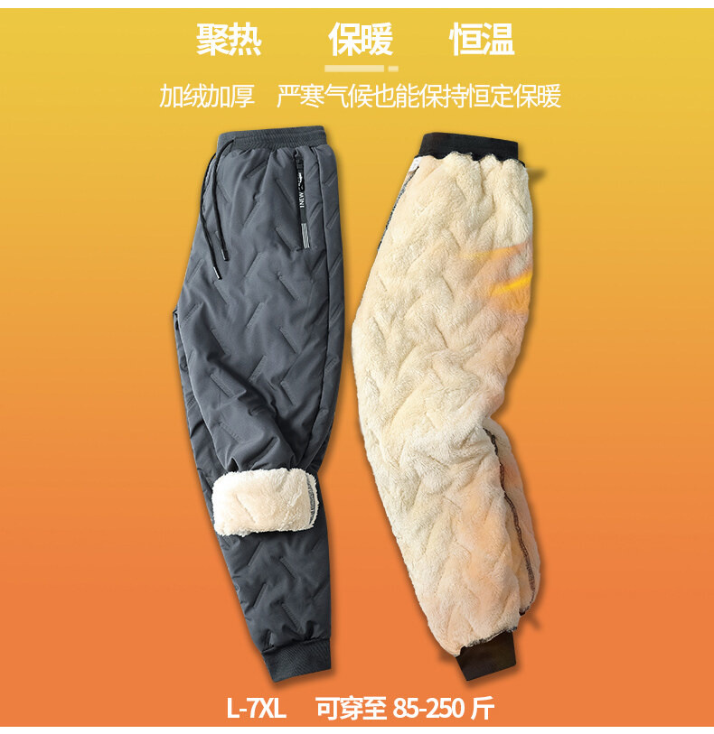 Водонепроницаемые хлопковые брюки больших размеров на флисовой подкладке из ягненка, осенне-зимние теплые повседневные брюки, ветрозащитные большие хлопковые брюки из овечьего флиса на северо-востоке