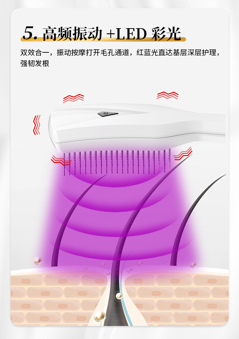 Электрический массажер для кожи головы с красным светом, вибрацией и фототерапией для контроля жирности, стимуляции роста волос и ухода за ними, электрическая расческа для ухода за волосами оптом