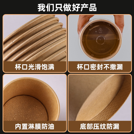 Одноразовая чашка для супа, утолщенная крафт-бумага, ведро для каши, суп для завтрака, лапша, жареная груша, упаковочная коробка, трансграничное место, оптовая продажа