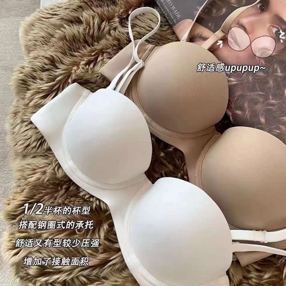 Сплошное цветное бесшовное нижнее белье, женская половина чашки, маленькая грудь, пуш-ап, тонкий верх, нижний толстый сексуальный бюстгальтер со стальными кольцами сверху, бюстгальтер, женский