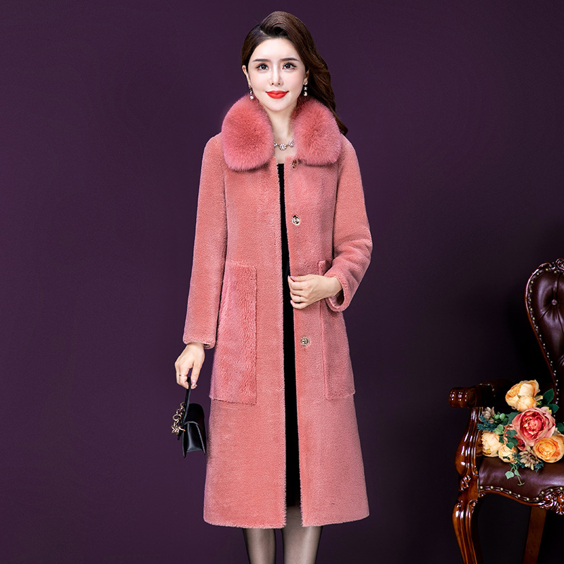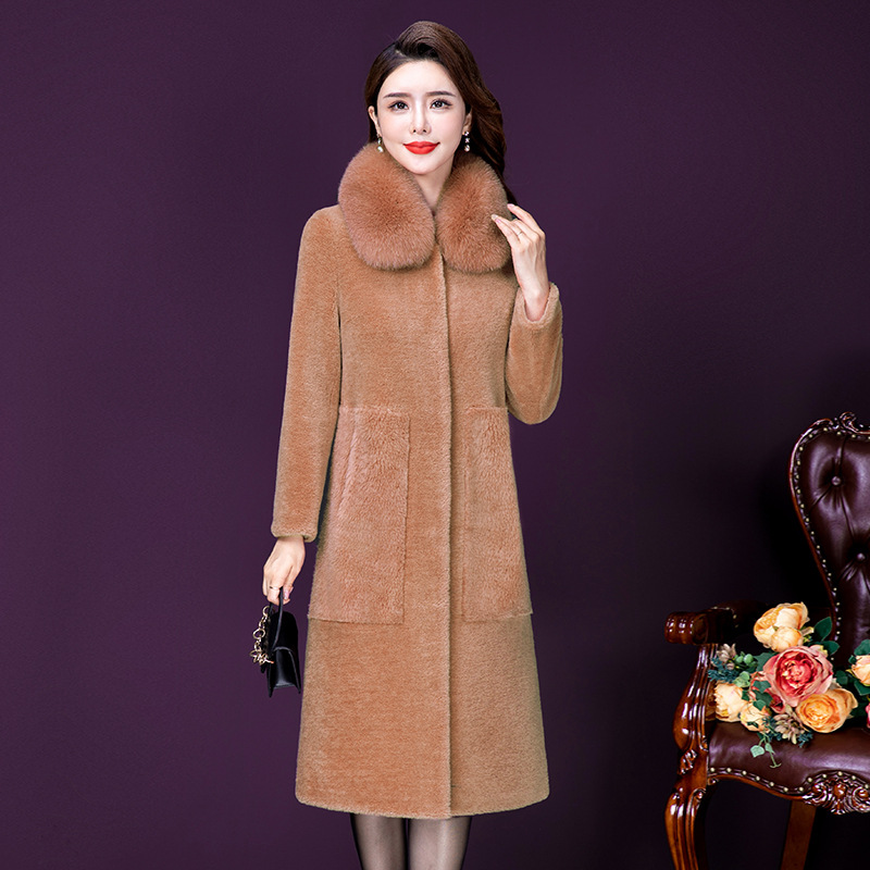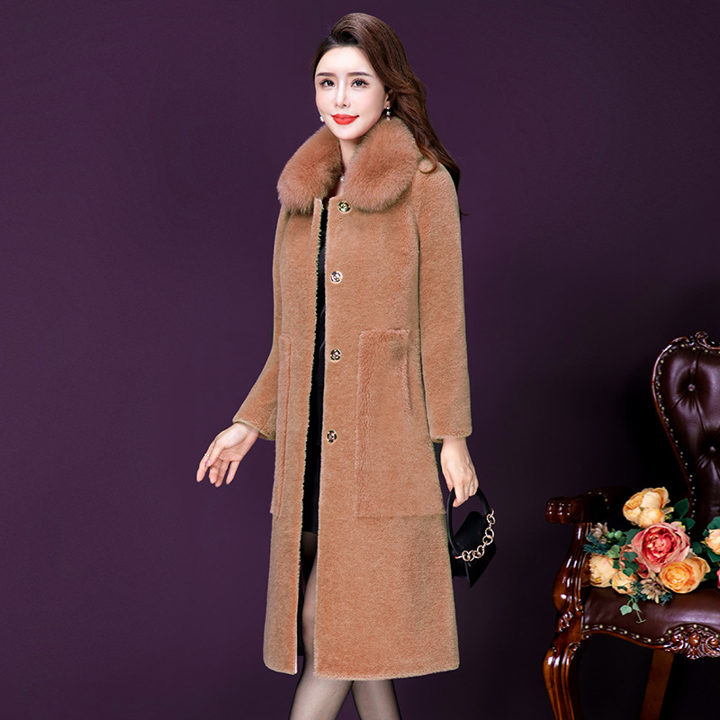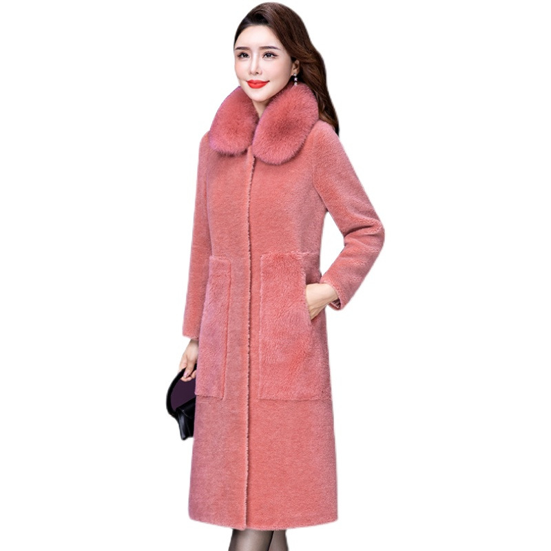 新款皮草外套女颗粒羊剪绒大衣高端时尚妈妈装中长款大码