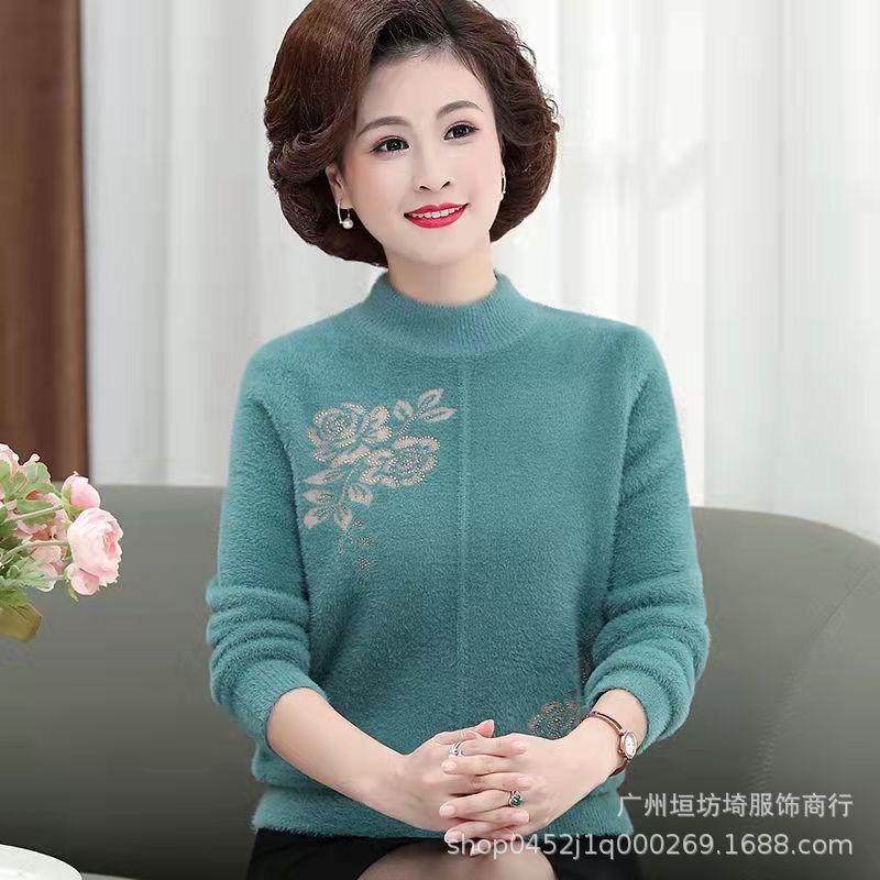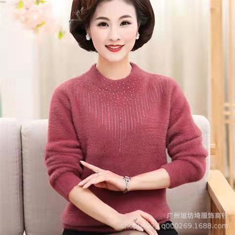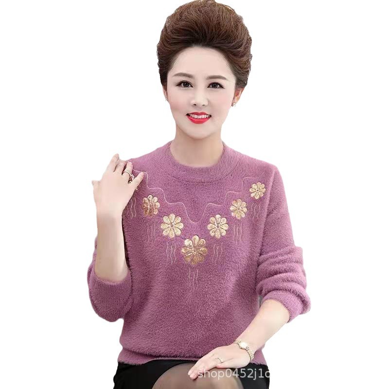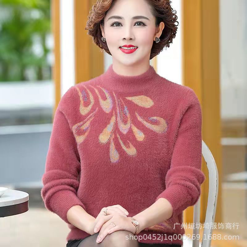 2025 новый вельветовый свитер из норки для женщин среднего и старшего возраста, шерстяной свитер, корейская версия, большие размеры, эластичный, с цветовым дизайном.