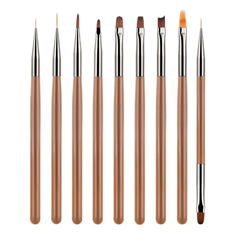 Длинная ручка для дизайна ногтей; Французская ручка для дизайна ногтей; Ручка-лепесток для дизайна ногтей; Короткая ручка для дизайна ногтей; Плоская светотерапевтическая ручка для дизайна ногтей; Кисть для дизайна ногтей; Функциональная ручка для дизайна ногтей; Ручка для фототерапии с круглой головкой для дизайна ногтей; Двусторонняя строительная ручка; Набор из 9 штук
