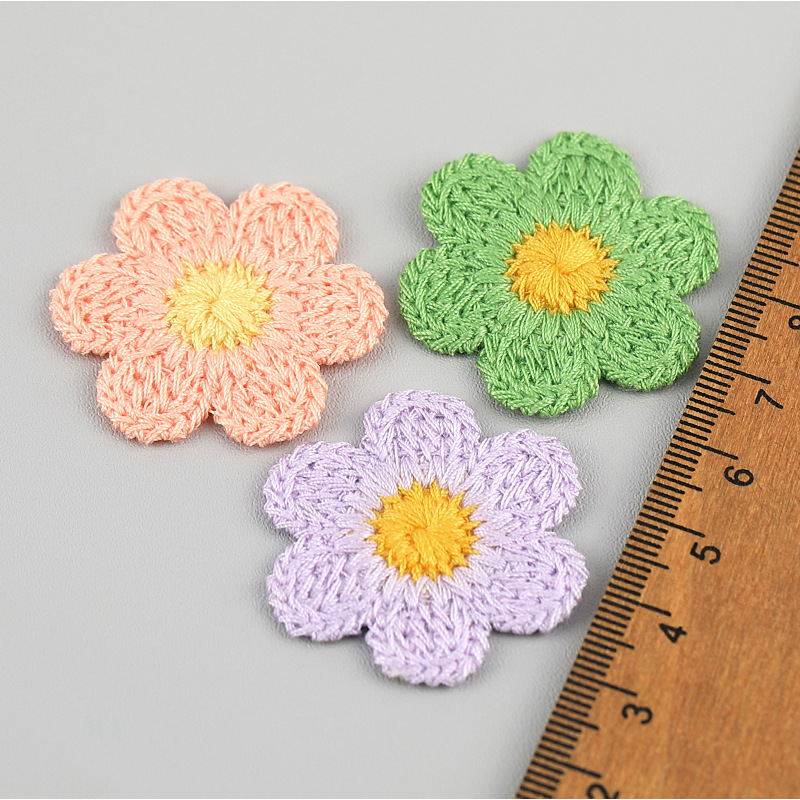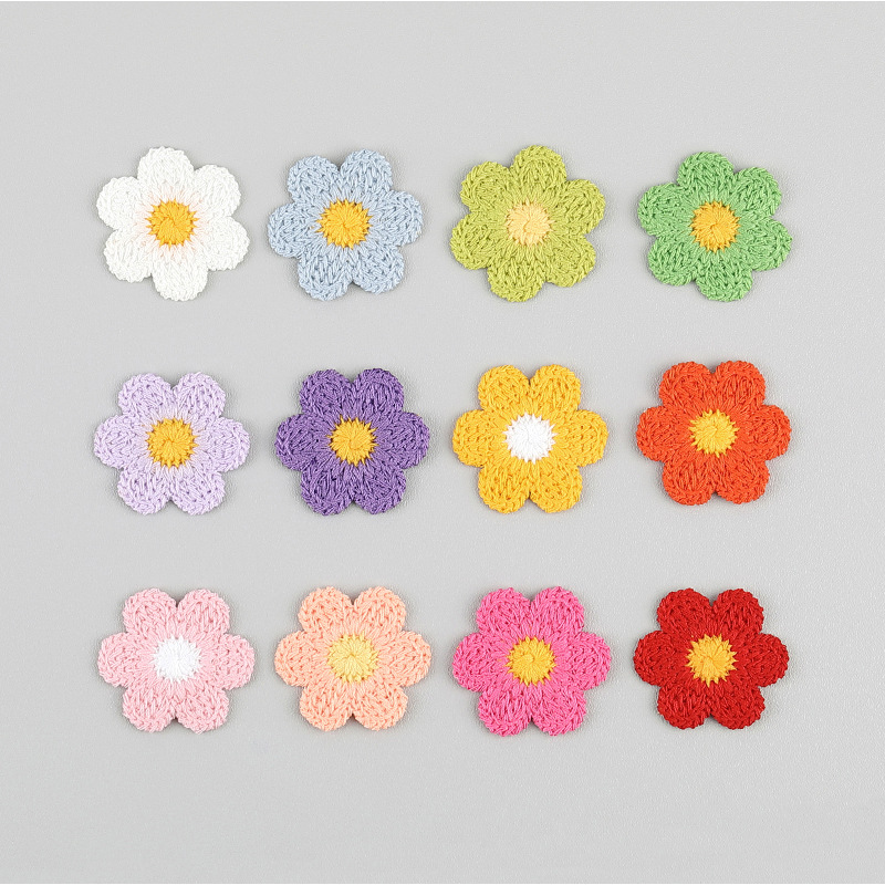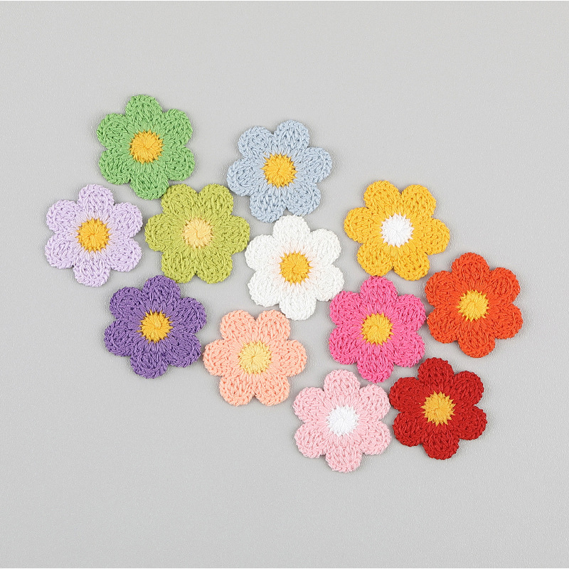 Вязаные нашивки в виде маленьких подсолнухов для декора одежды, обуви, головных уборов, свитеров, шарфов и других аксессуаров.