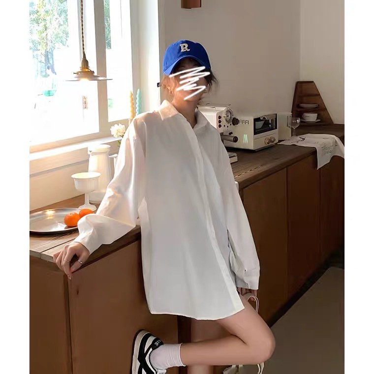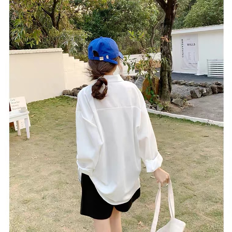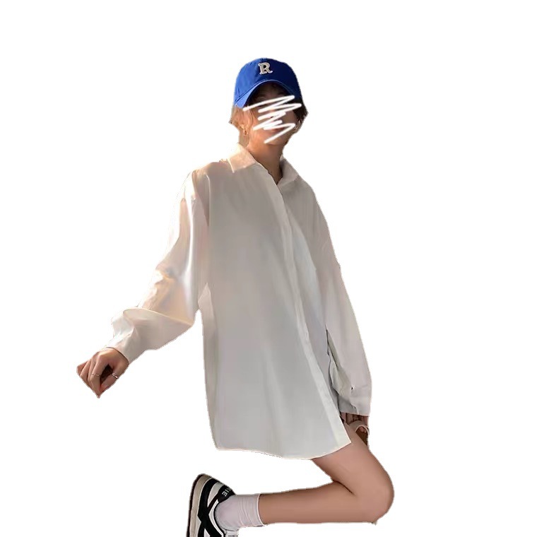 Женская универсальная Свободная белая рубашка-миди в Корейском стиле больших размеров в ленивом стиле для девочек, женский весенний топ с длинными рукавами, уменьшающий возраст
