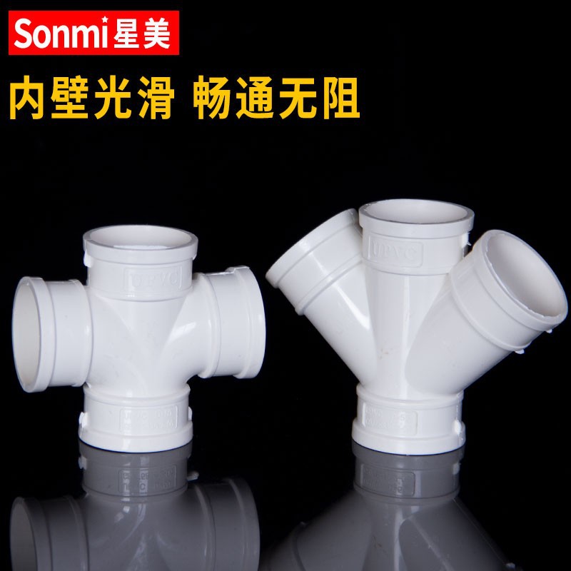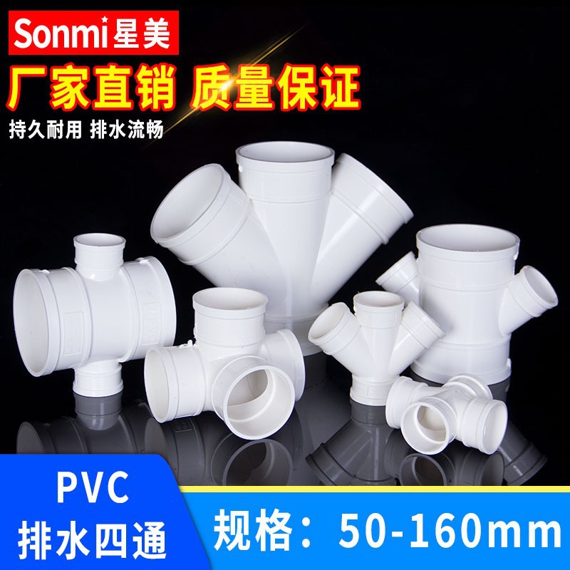 UPVC плоский 45-градусный Наклонный четырехходовой уменьшающий стык фитинги канализационные дренажные трубы фитинги белый клей 75