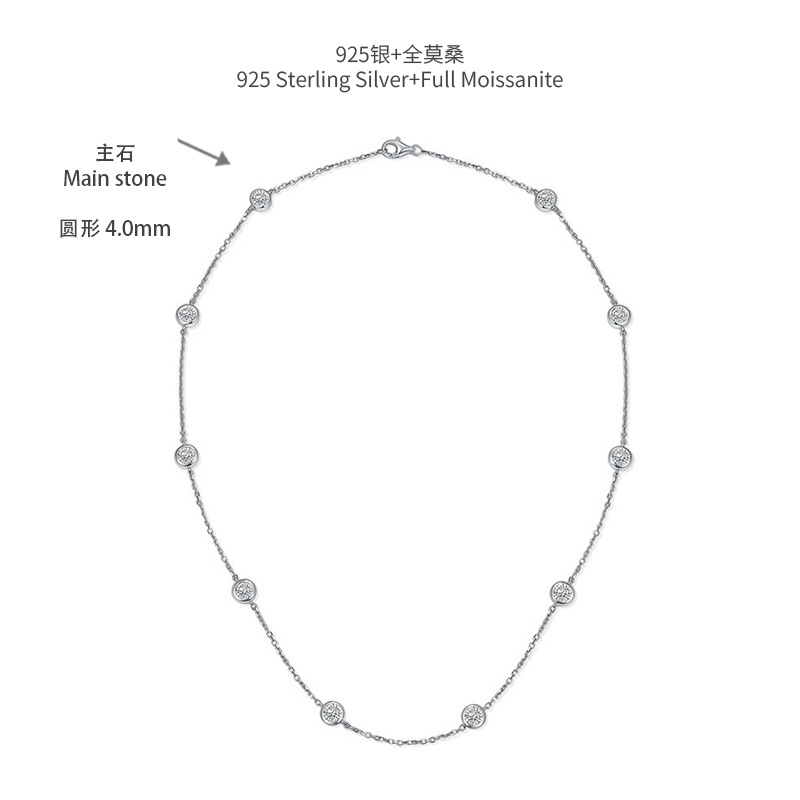 Ювелирные изделия YunTun Европейские и американские стек ветра носить 4,0 мм круглый муассанит серебро с покрытием 18-каратного ожерелья из пузырьков