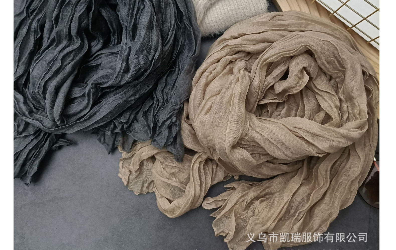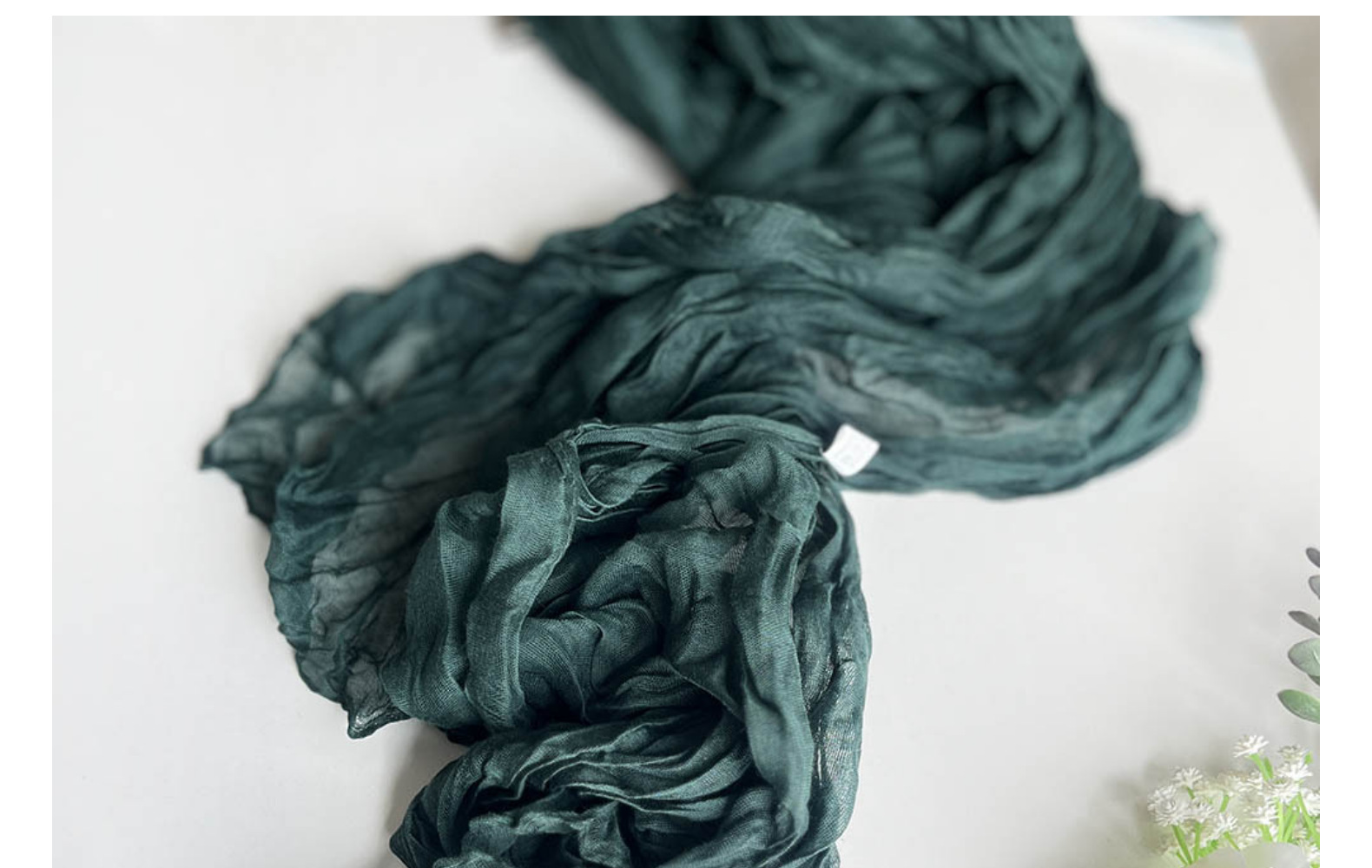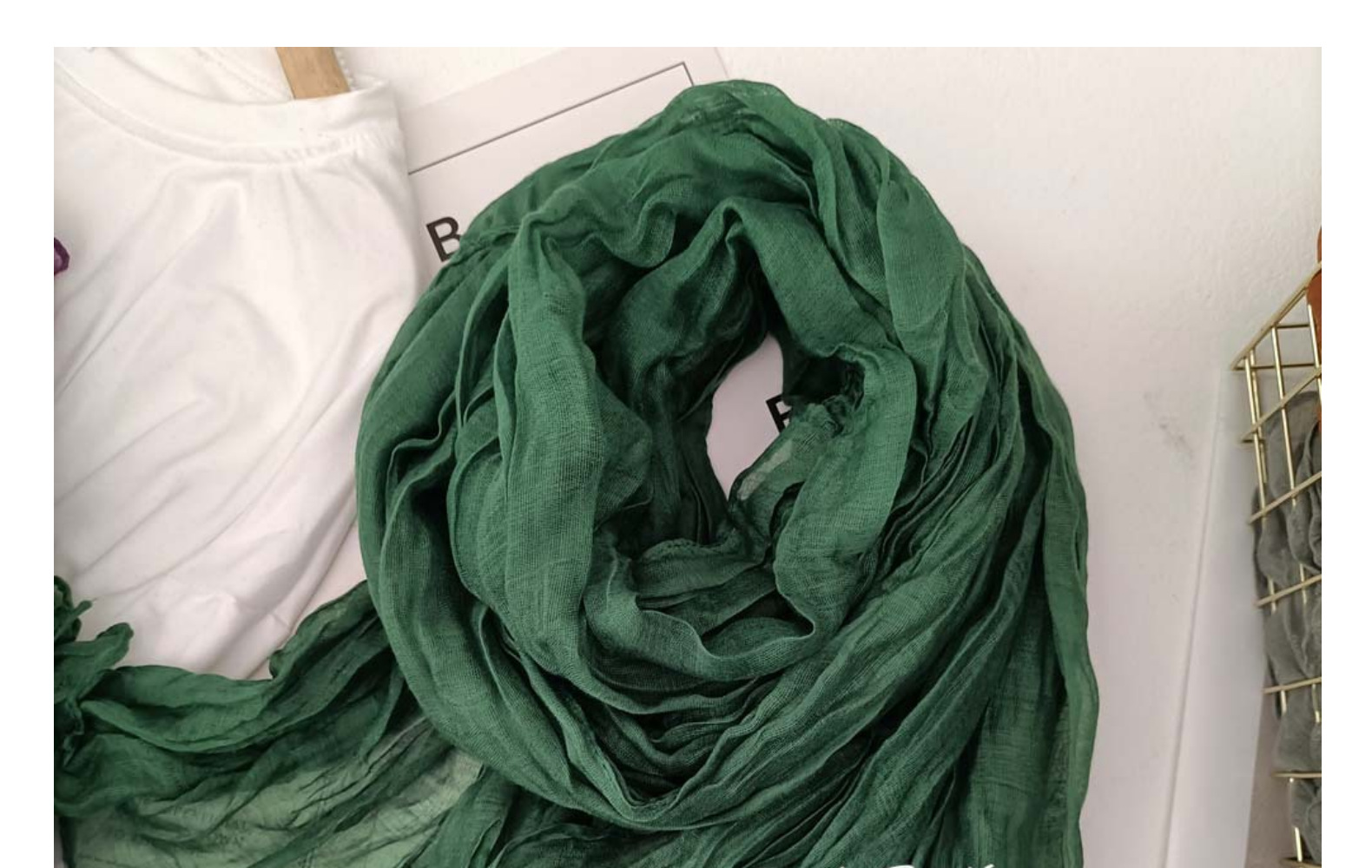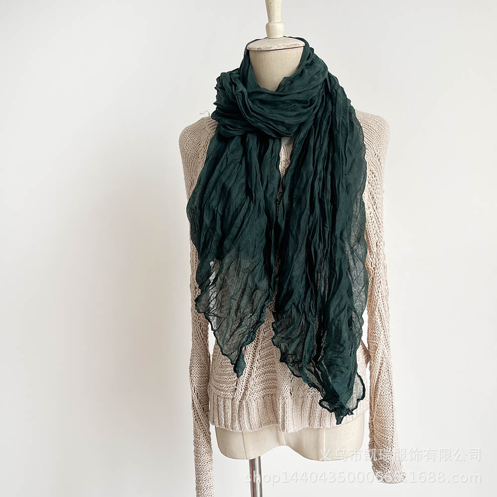 Однотонный хлопковый и льняной шарф в стиле ретро Осень и зима новый плиссированный зеленый ретро тонкий длинный платок теплый шелковый шарф для мужчин и женщин