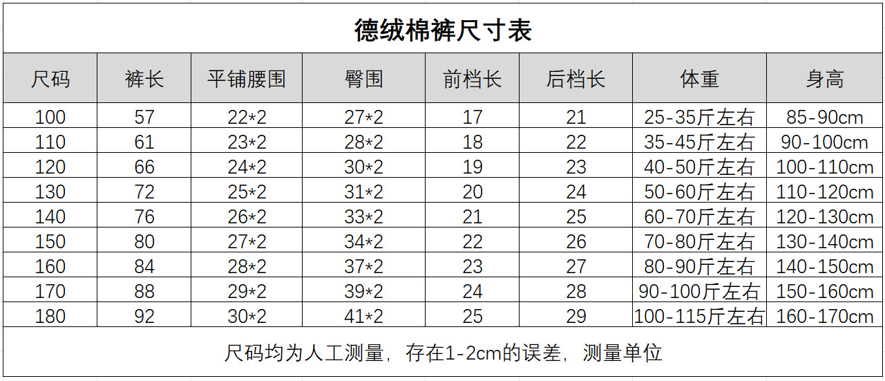100 (подходит для роста 80-90 см); 110 (подходит для роста 90-100 см); 120 (подходит для роста 100-110 см); 130 (подходит для роста 110-120 см); 140 (подходит для роста 120-130 см); 150 (подходит для роста 130-140 см); 160 (подходит для роста 140-150 см); 170 (подходит для роста 150-160 см); 180 (подходит для роста 160-170 см)