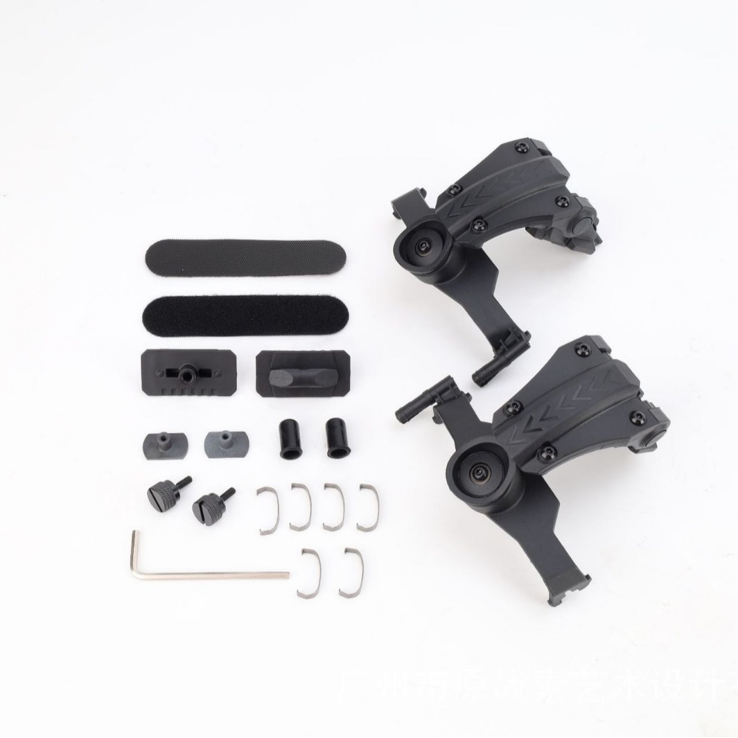l 这款 ARC 头盔导轨适配器可以 360° 旋转,可以上下移动。 耳机上支架的卡位也可以旋转。 支架的长度也可以调整。