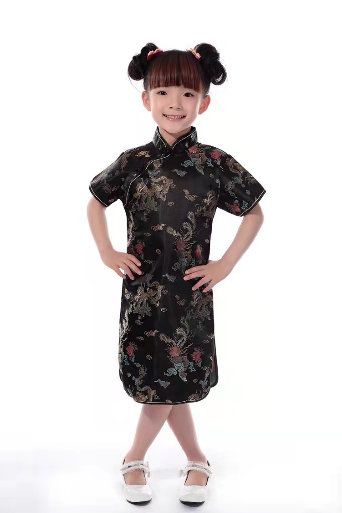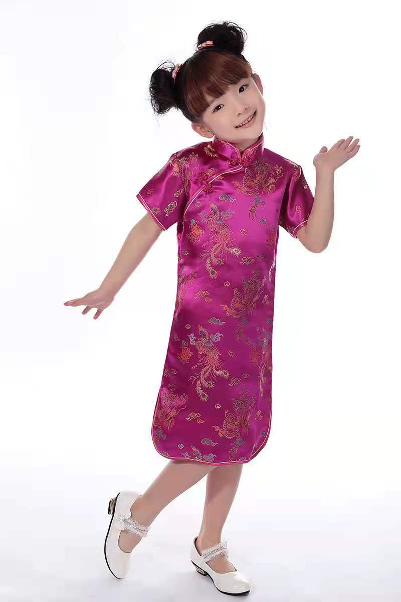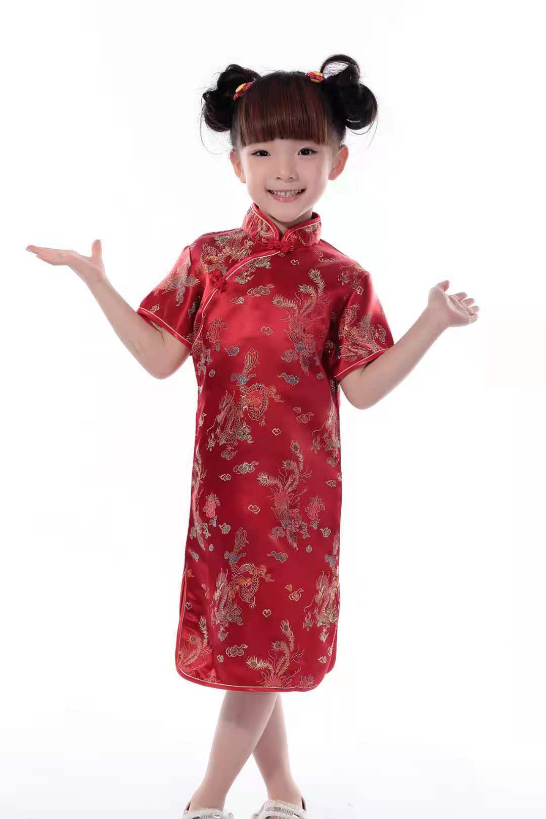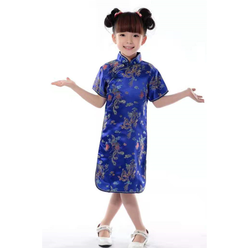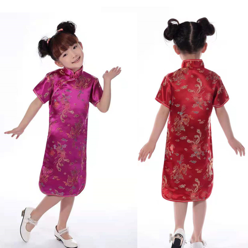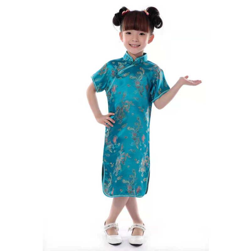 Детский парчовый Дракон и Феникс Чонсам для девочек новогодний костюм Тан платье Студенческая одежда для выступлений