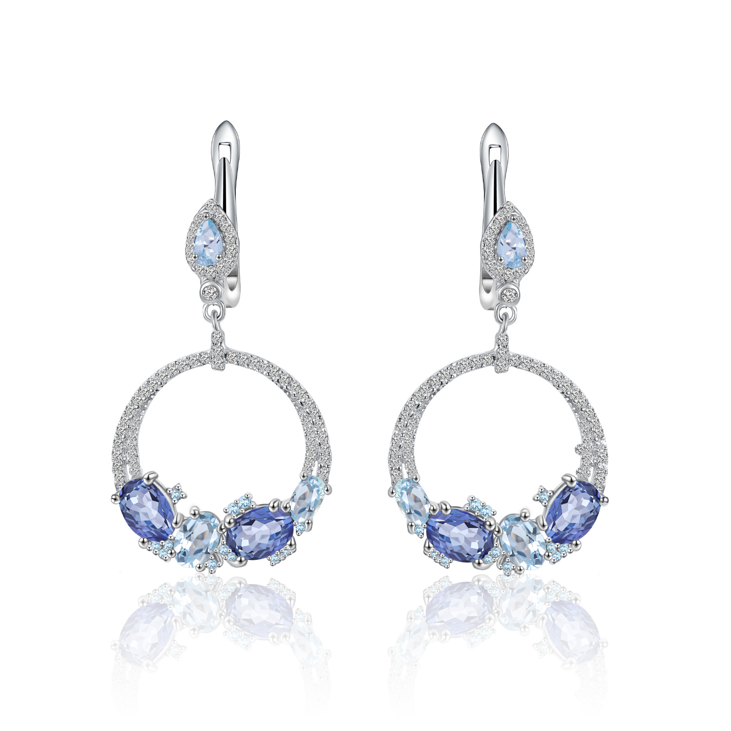 Натуральный ТОПАЗ + анютины глазки синий кристалл серьги; Серьги природных Топаз