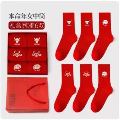 Красные носки на год рождения, однотонные носки средней длины для осени и зимы, парные носки, высокие носки для мужчин и женщин, носки на удачу, хлопковые носки.