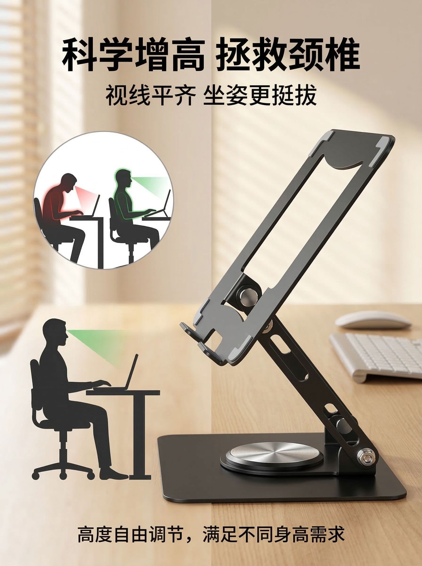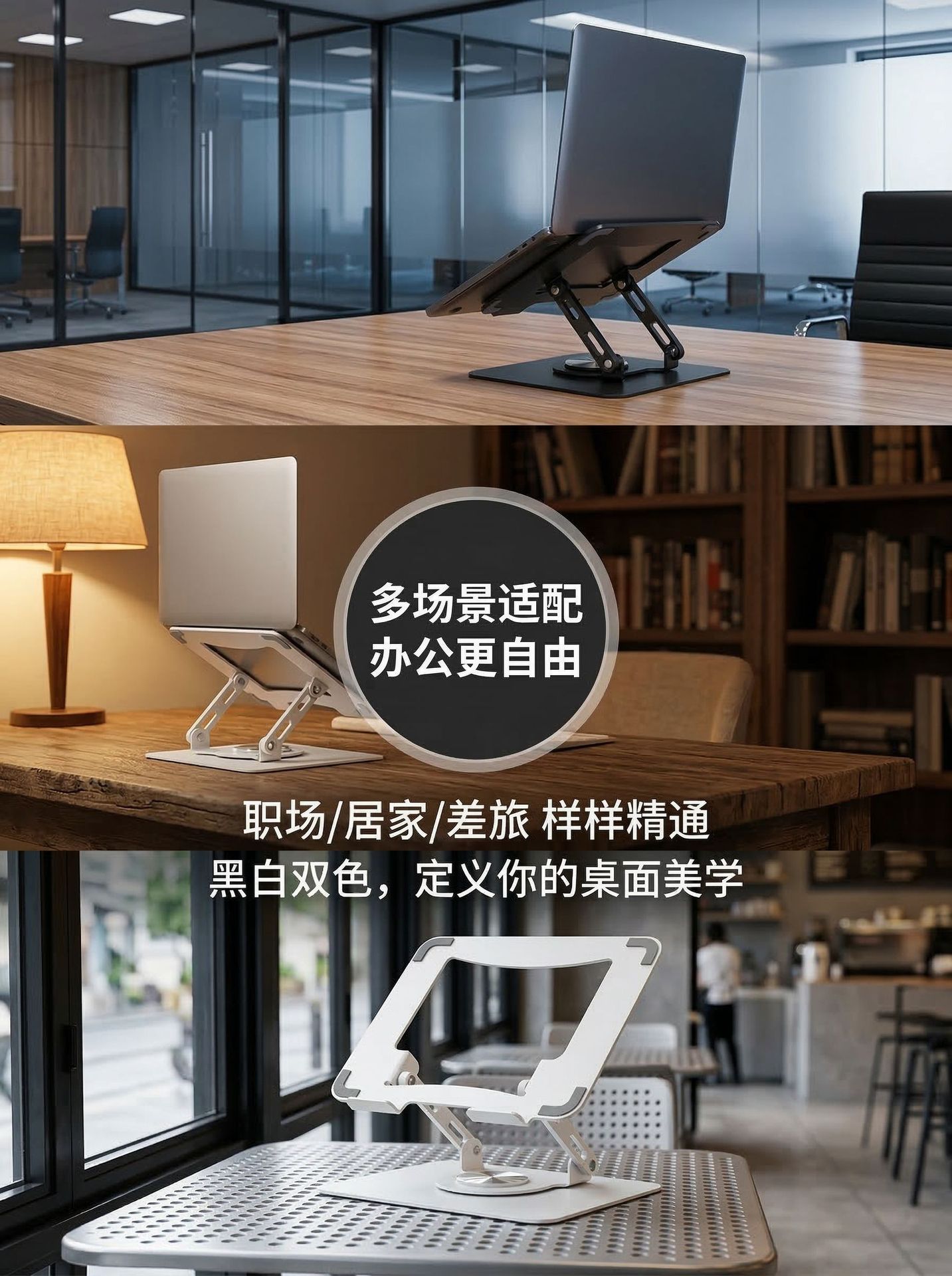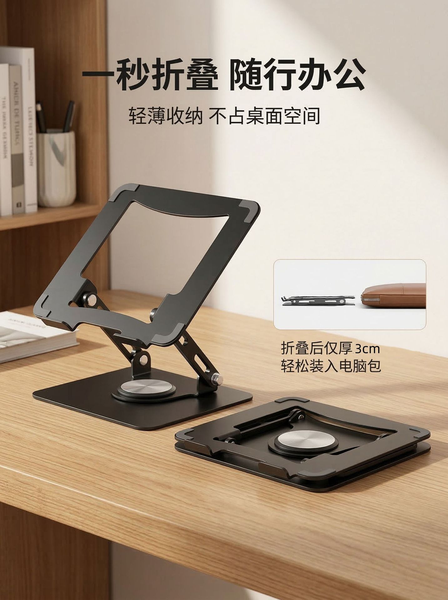 Складная подставка для ноутбука, планшета, настольного компьютера, с регулируемой высотой, охлаждением и вращением на 360 градусов, металлический кронштейн