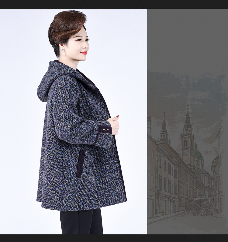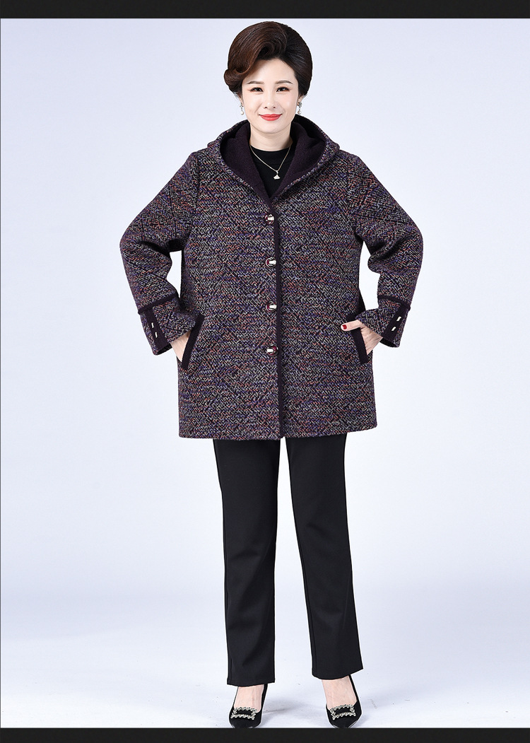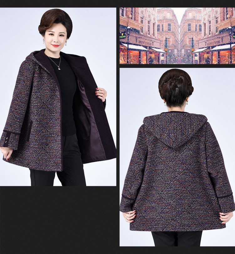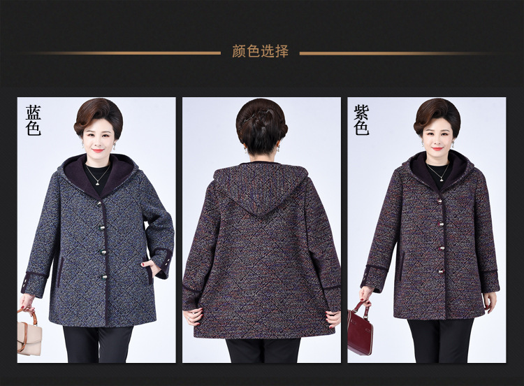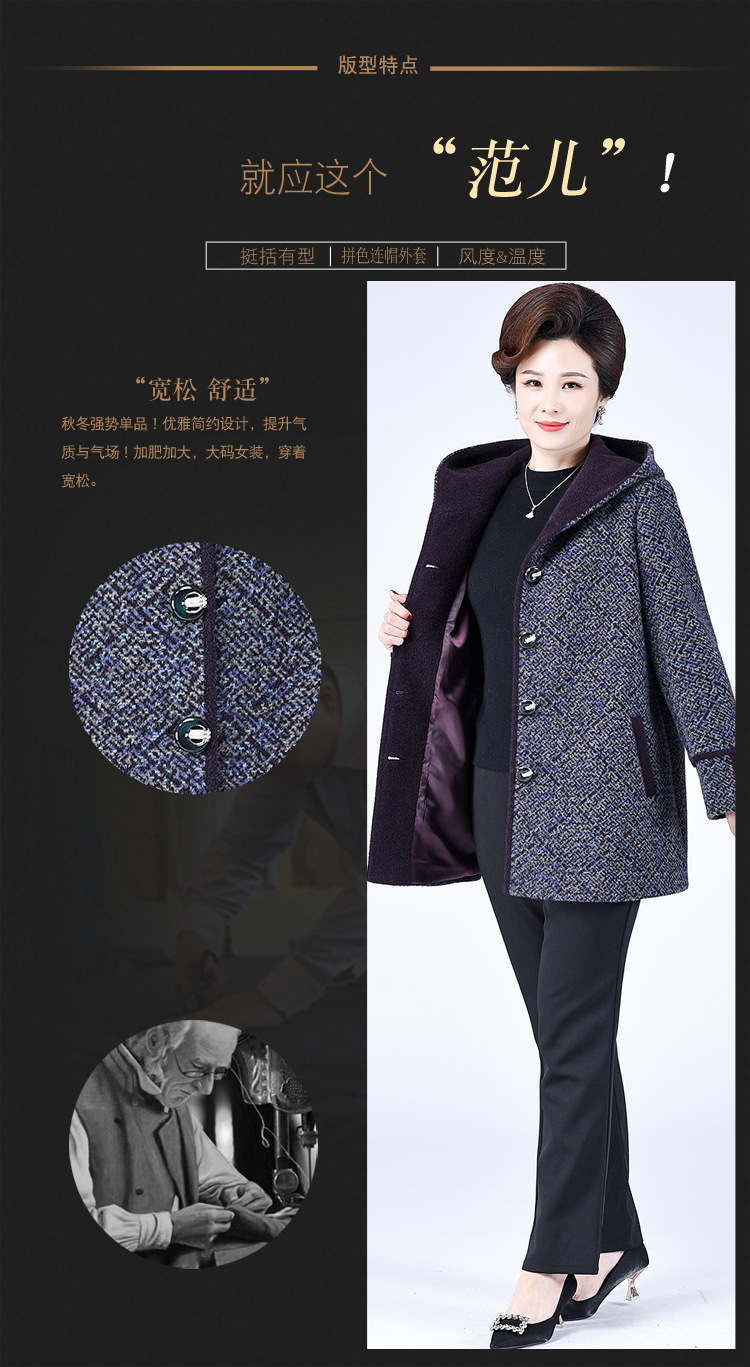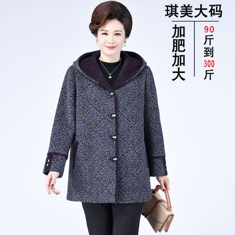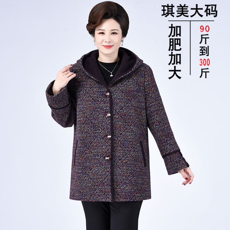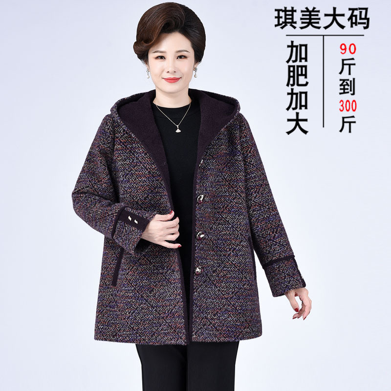Зимнее пальто для полных мам среднего и пожилого возраста 200 кг, Свободное пальто с капюшоном в западном стиле больших размеров, подходящее по цвету для среднего возраста