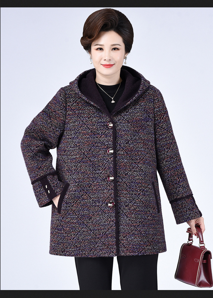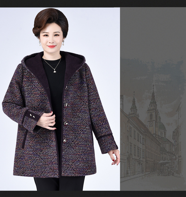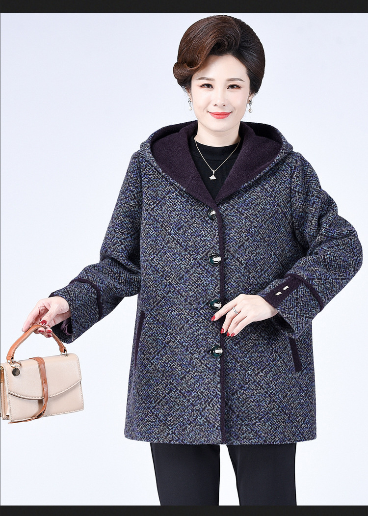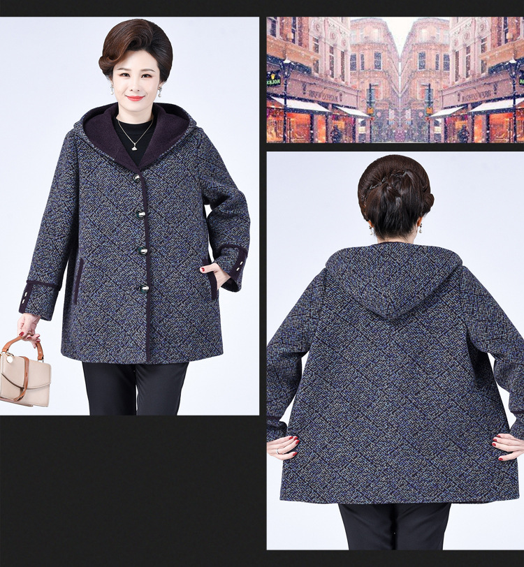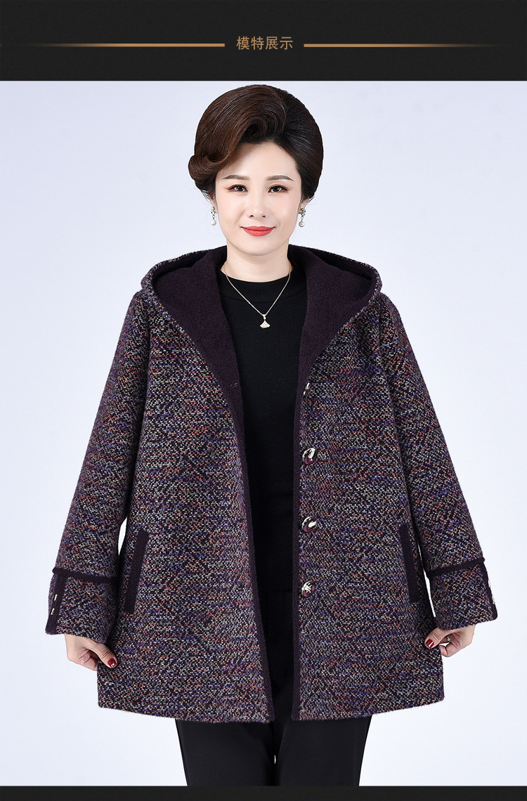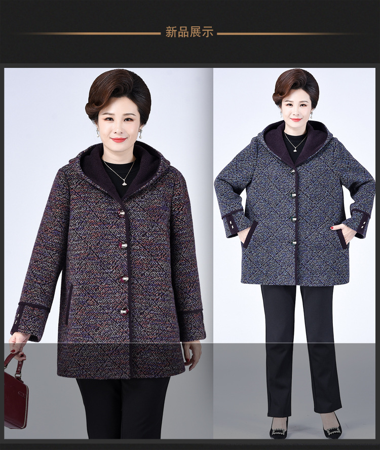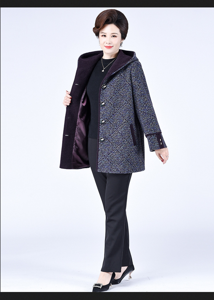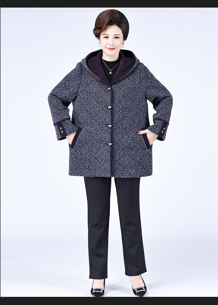 Зимнее пальто для полных мам среднего и пожилого возраста 200 кг, Свободное пальто с капюшоном в западном стиле больших размеров, подходящее по цвету для среднего возраста