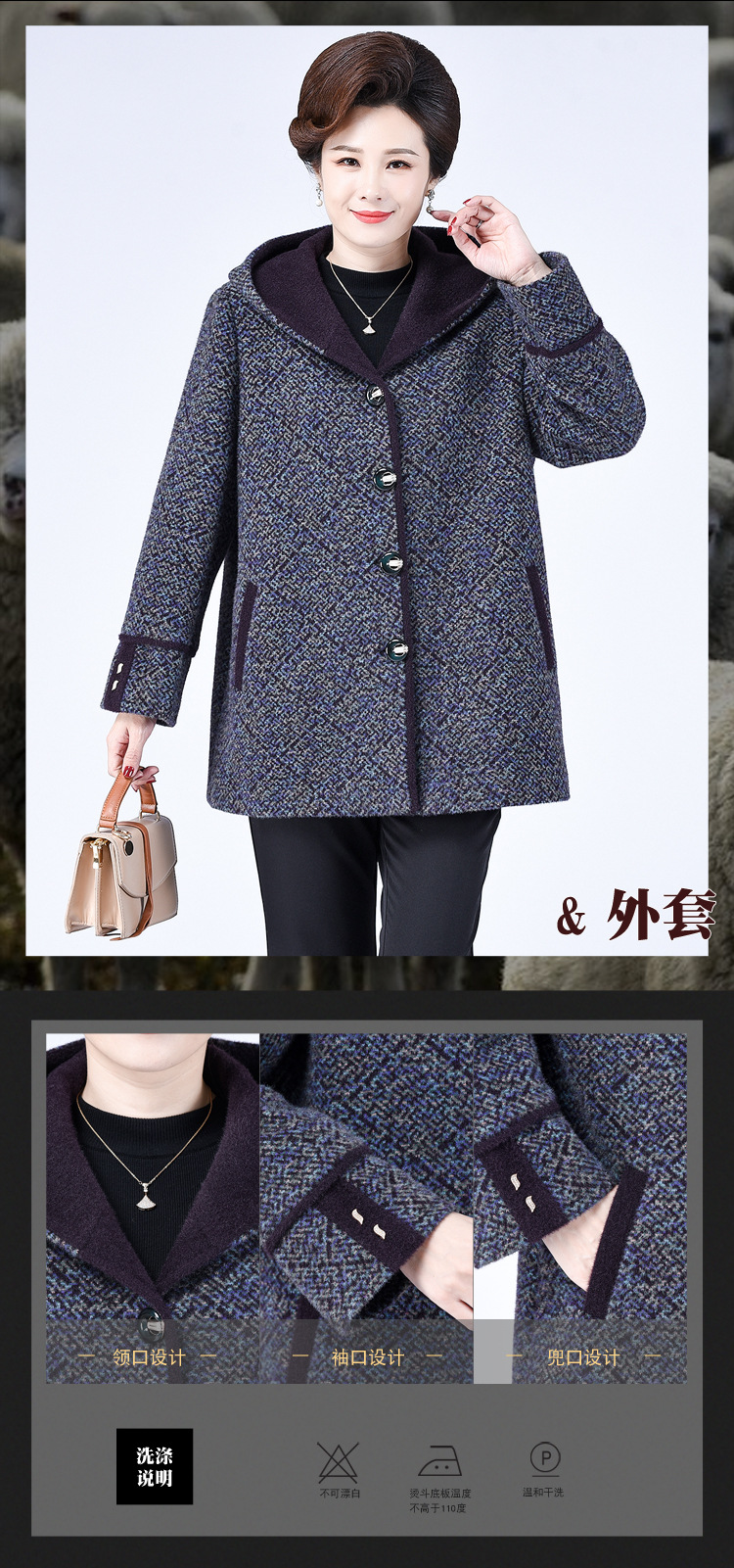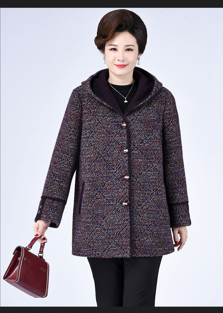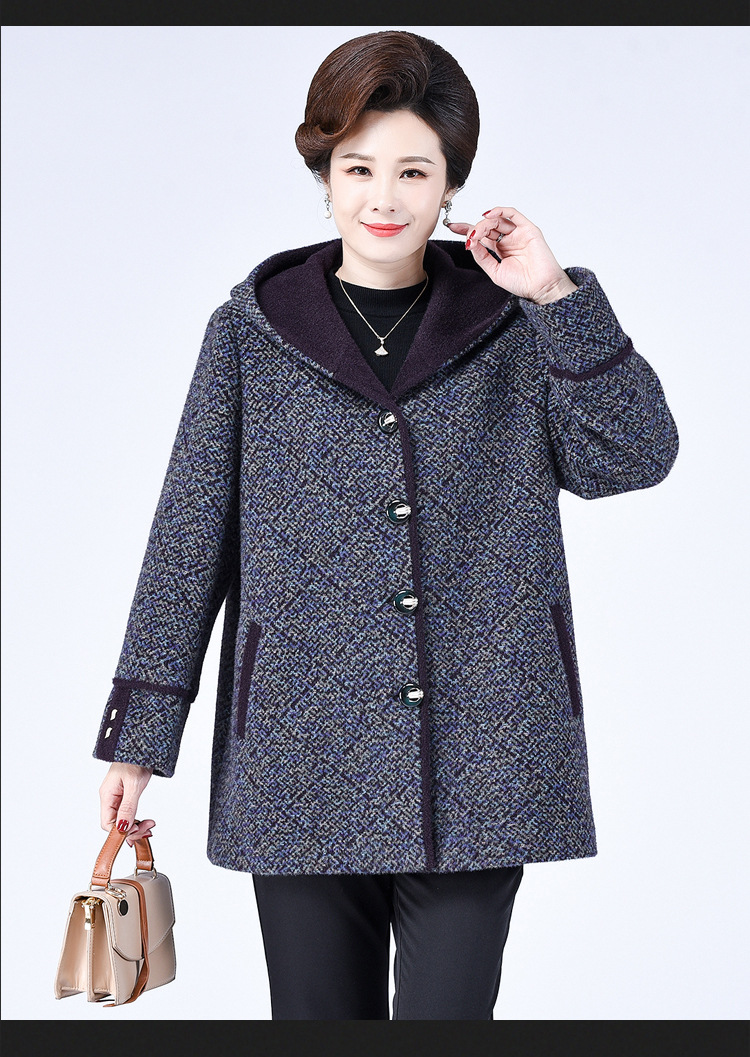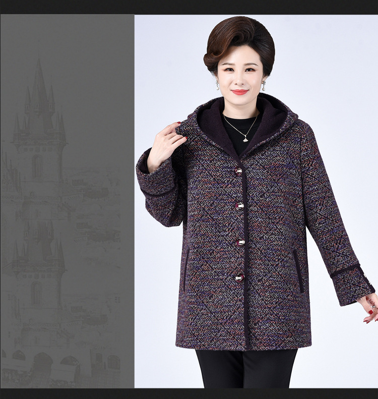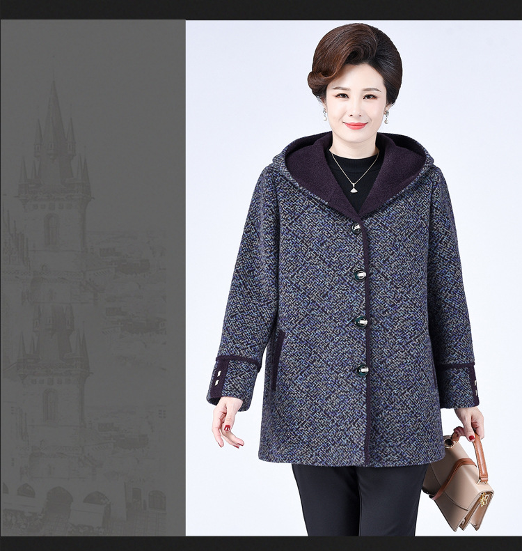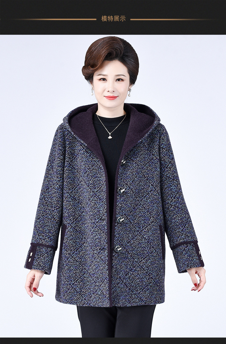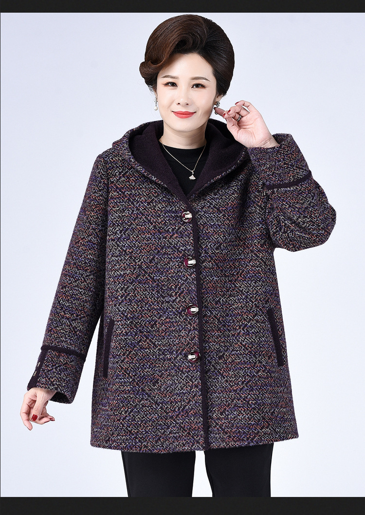 Зимнее пальто для полных мам среднего и пожилого возраста 200 кг, Свободное пальто с капюшоном в западном стиле больших размеров, подходящее по цвету для среднего возраста