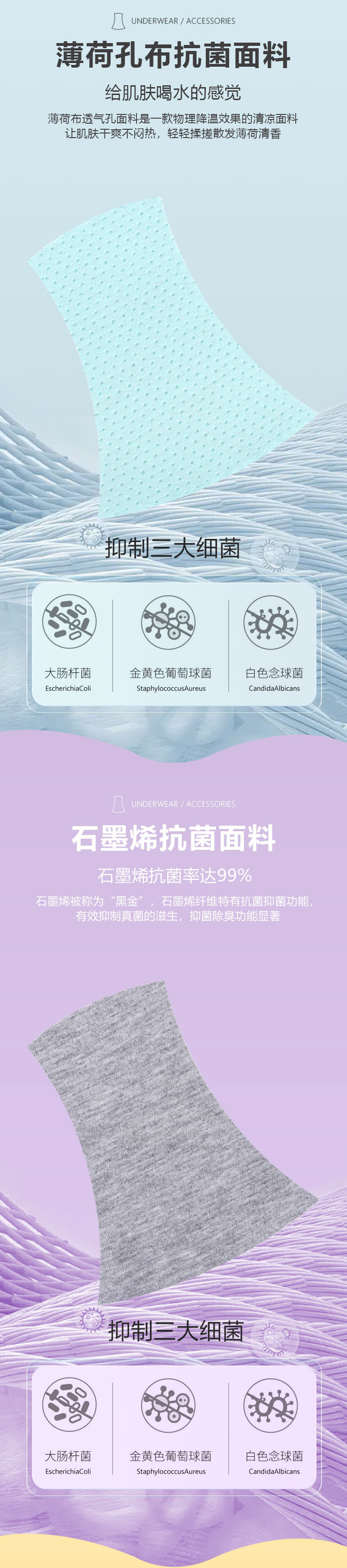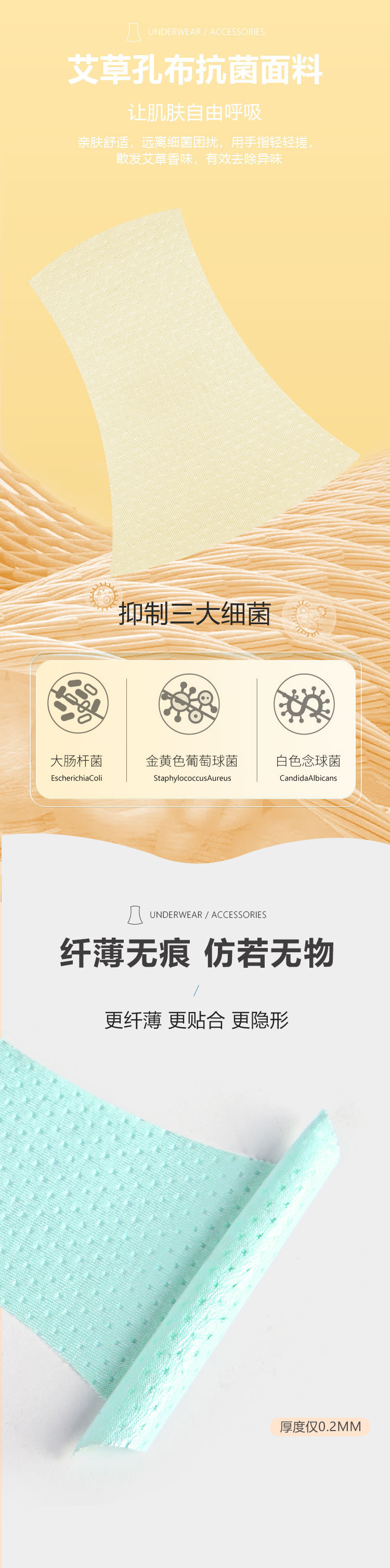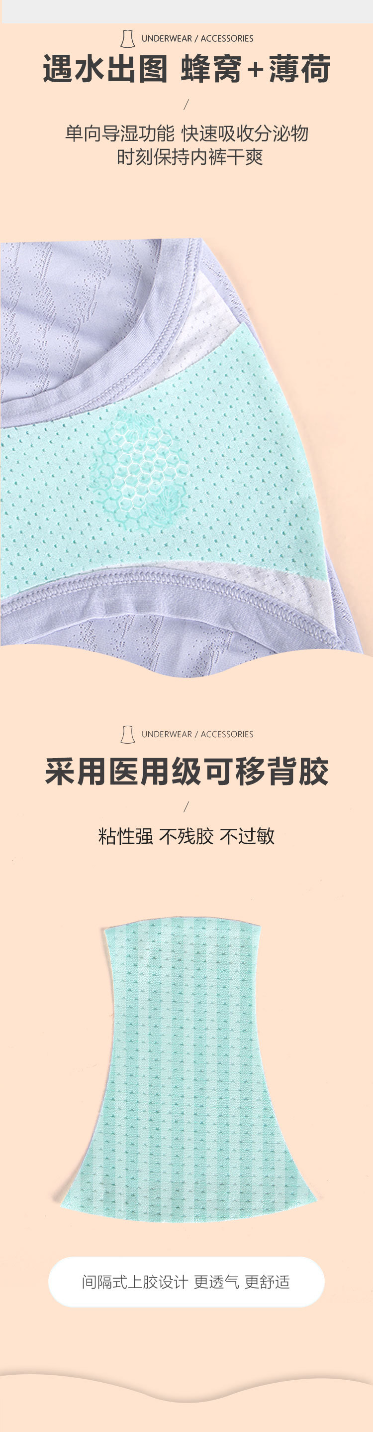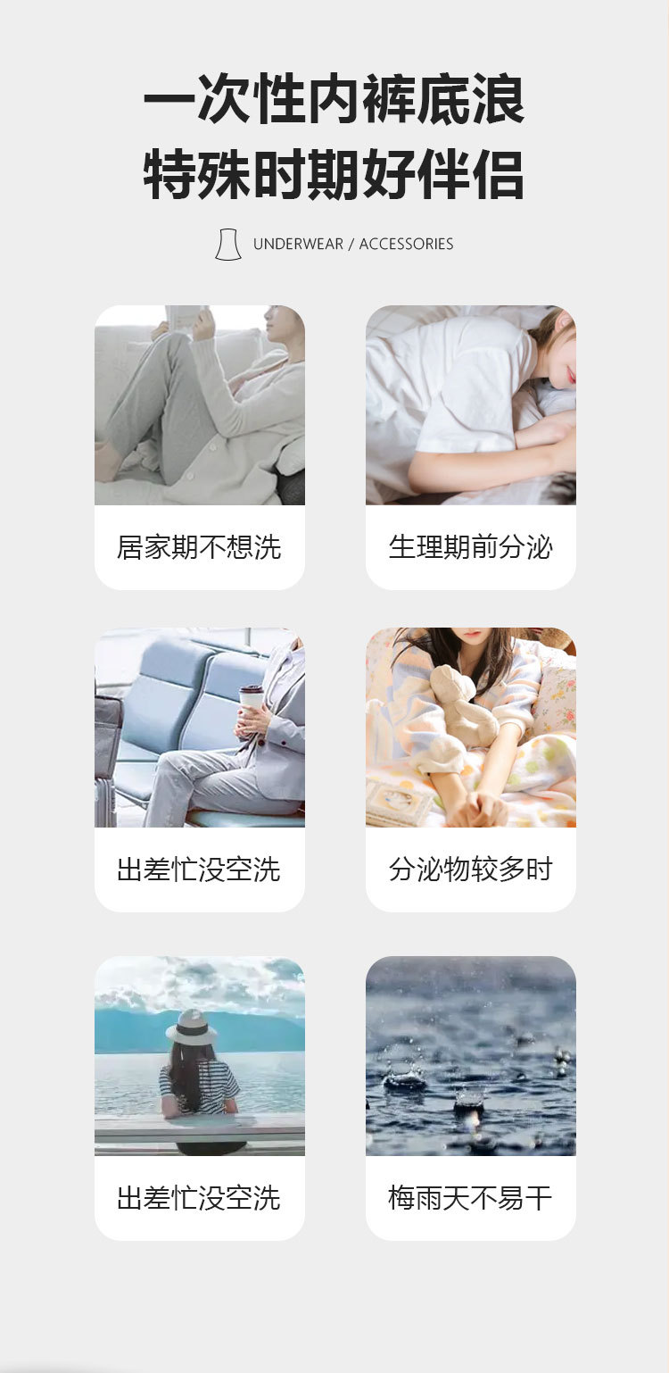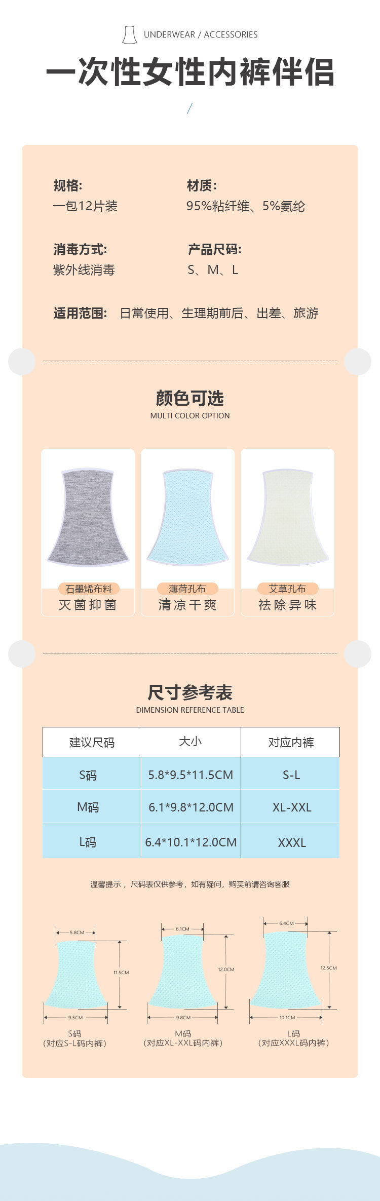 Женское одноразовое нижнее белье из чистого хлопка с антибактериальными и дезодорирующими свойствами, с сетчатой вставкой и влагопоглощающей, антибактериальной и дышащей подкладкой в области промежности.