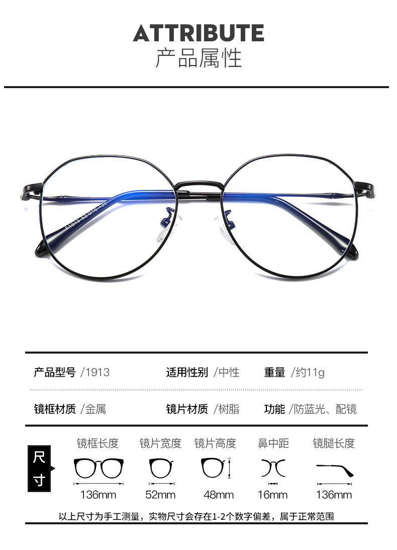注意:本链接近视镜片眼镜不防蓝光,请留意。介意慎拍