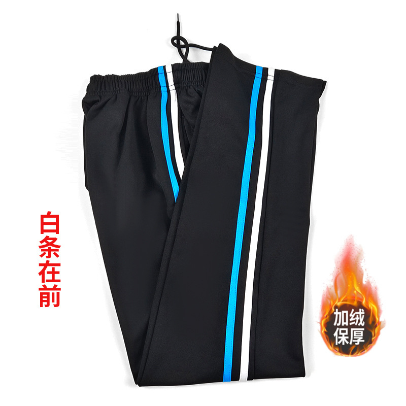 Сине-белая полоса синяя полоса зимой на флисовой подкладке утолщенная школьная форма брюки Начальная школа Студенты средней школы белые и синие шорты