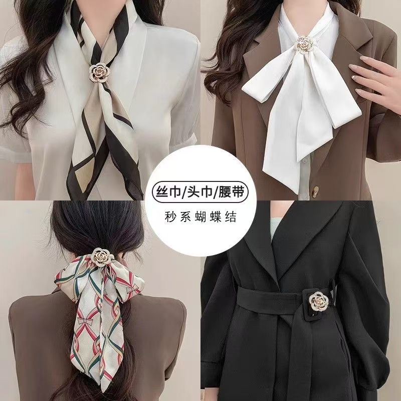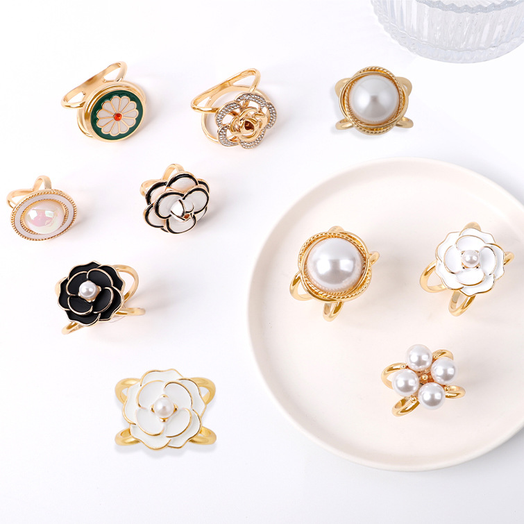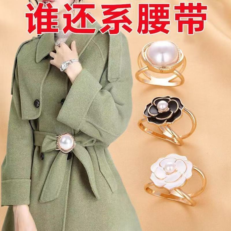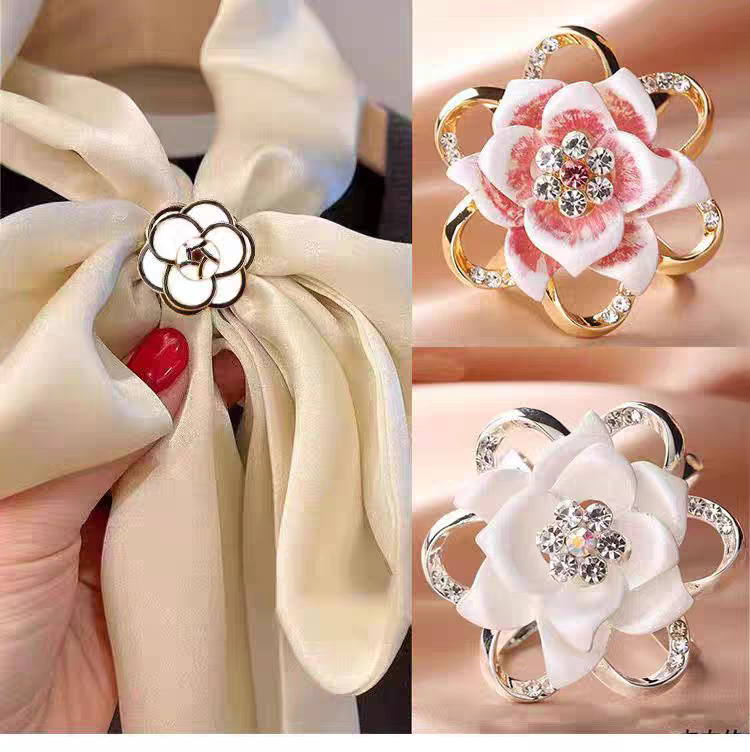 Женская элитная пряжка для шелкового платка, универсальная пряжка для платка двойного назначения, модная пряжка для пояса с жемчугом и камелией.