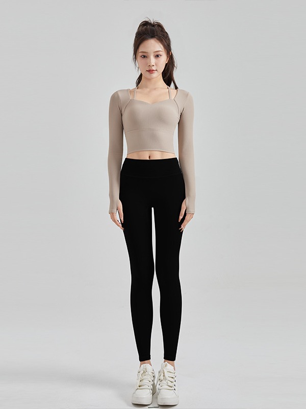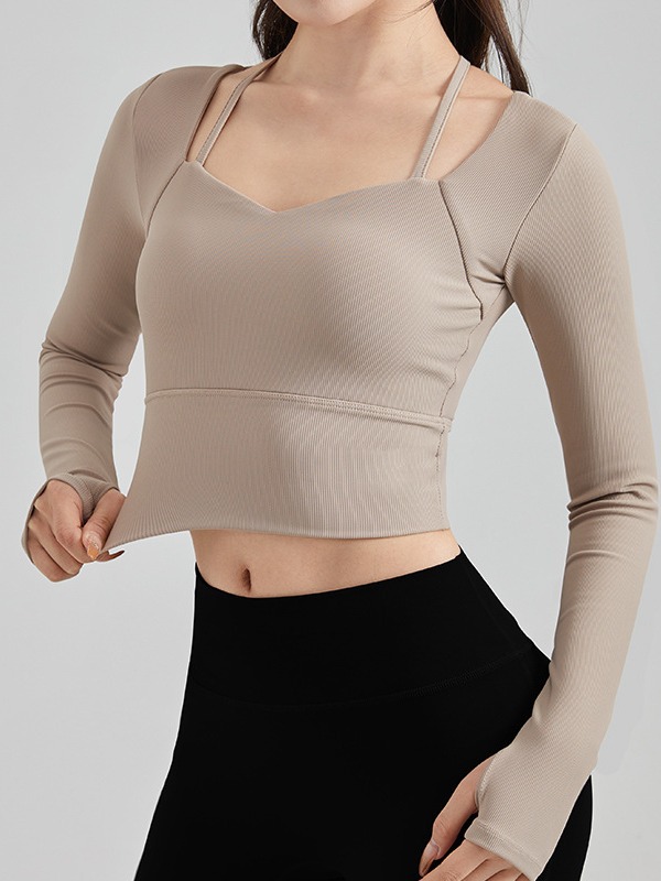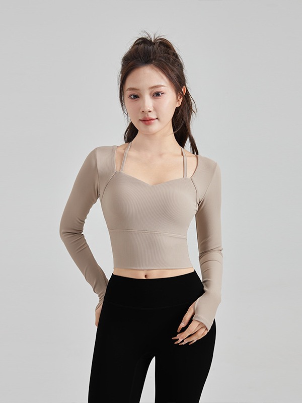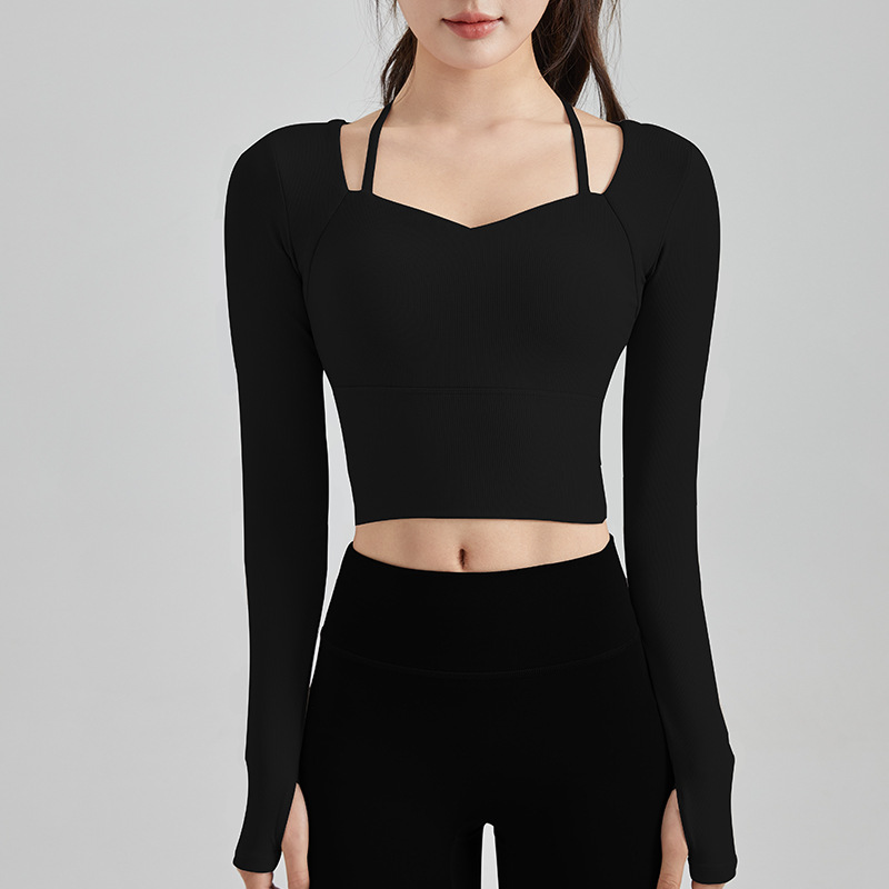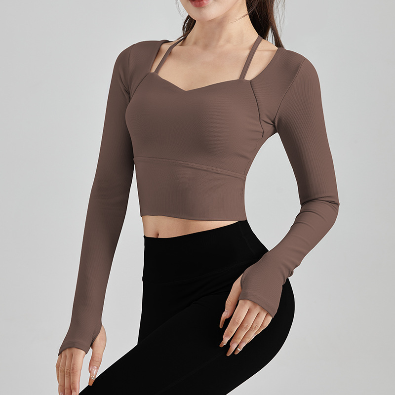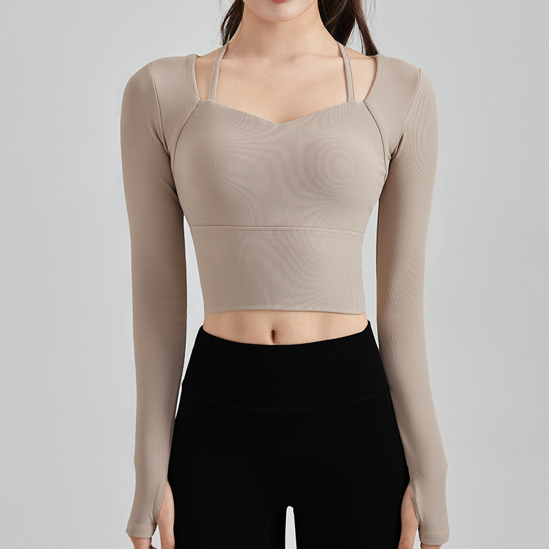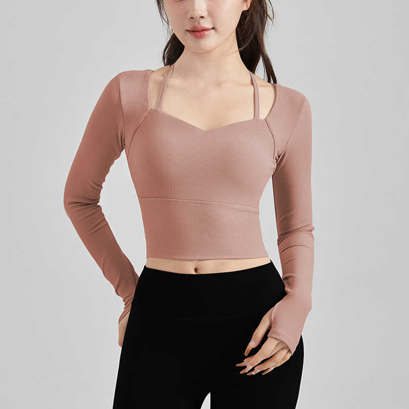Осенне-зимняя сексуальная одежда для йоги на бретелях, женский спортивный топ с нагрудным ковриком, быстросохнущая элегантная одежда для похудения с длинными рукавами для бега и фитнеса